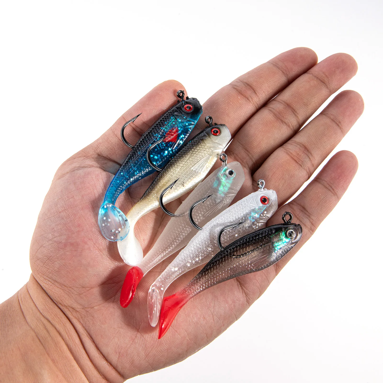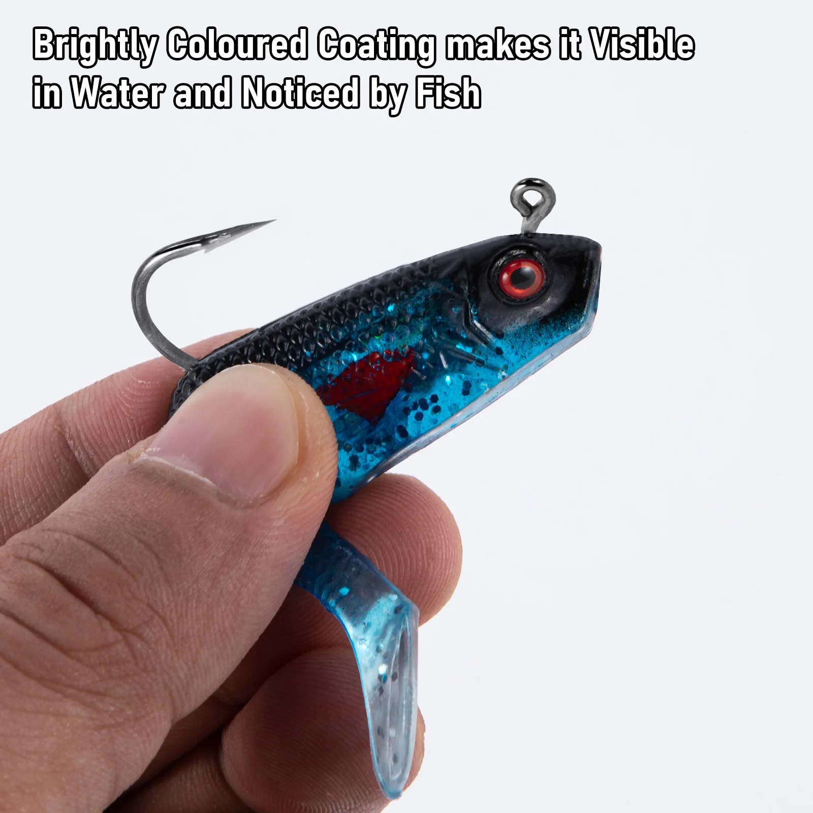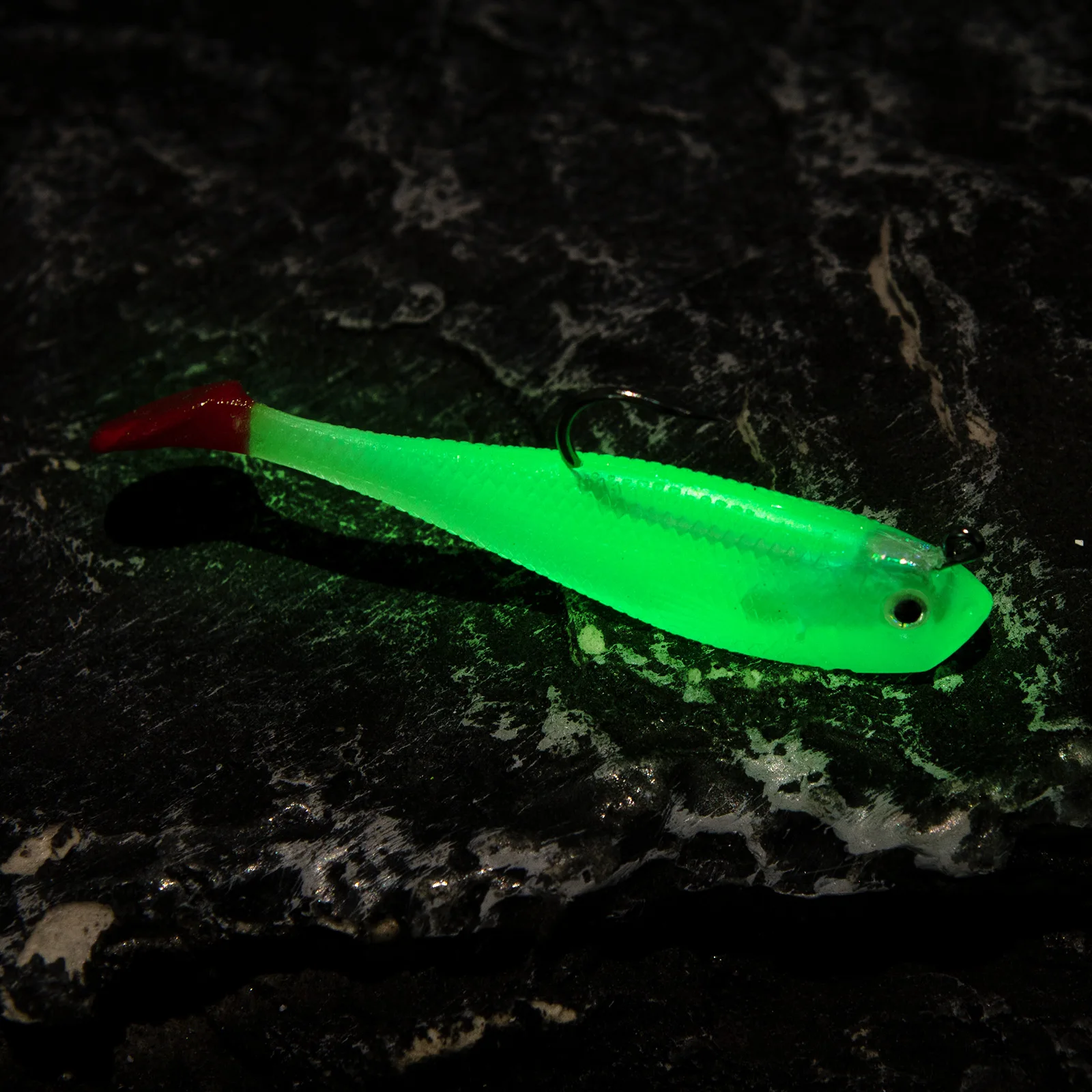 3. El revestimiento de colores brillantes de este señuelo de plástico suave lo hace muy visible en el agua, atrayendo la atención de los peces depredadores que buscan una comida fácil. Uno de ellos tiene efecto luminoso, como una diana en el agua por la noche y atrae los ojos de los peces.