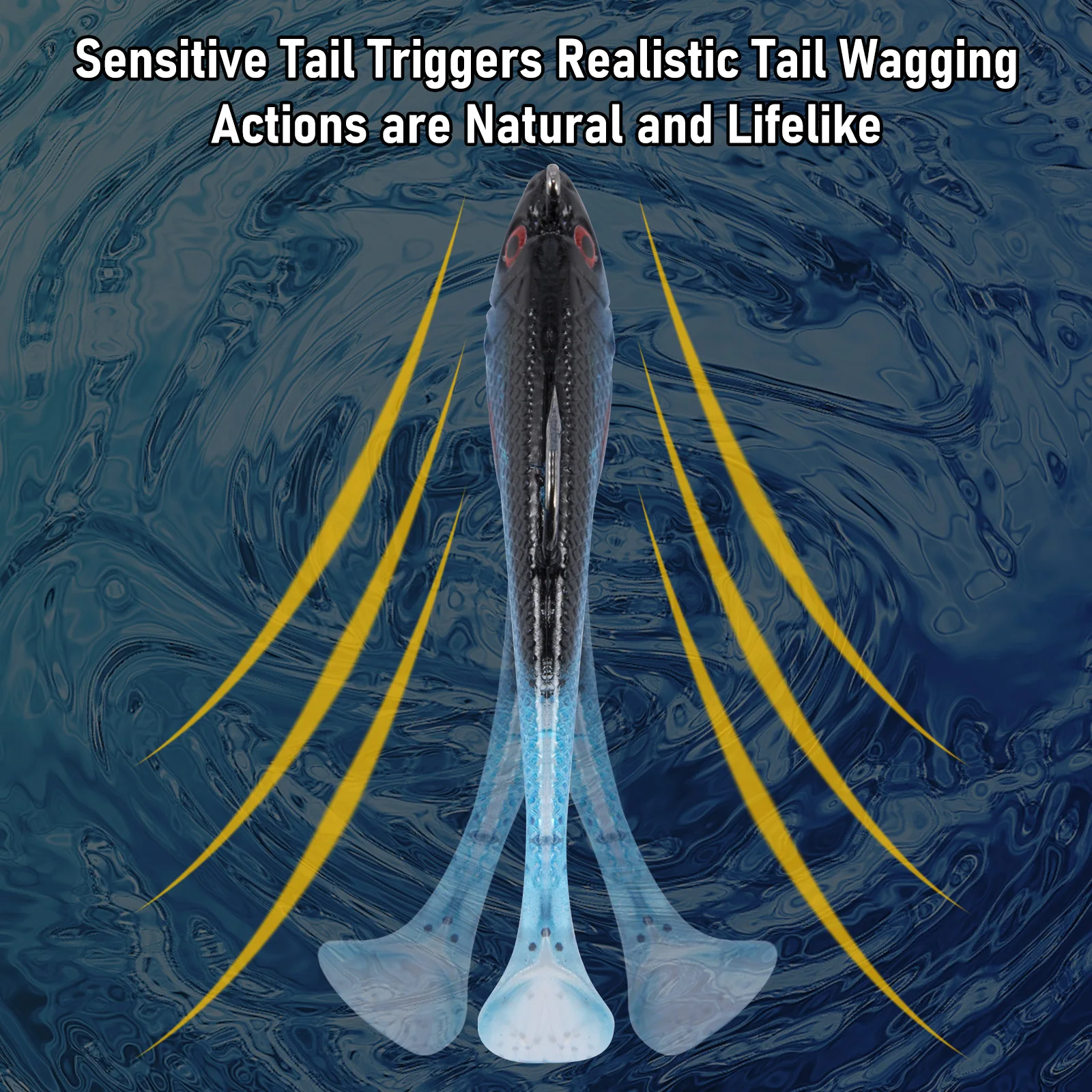 4. El sensible diseño de cola de paleta de este señuelo activa acciones realistas de movimiento de cola, imitando el movimiento natural de natación del cebo vivo y haciendo que sea más atractivo para que los peces muerdan.