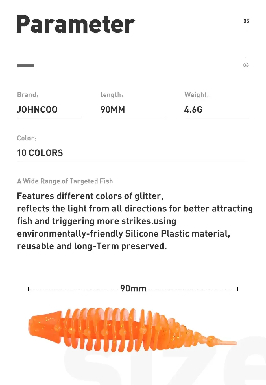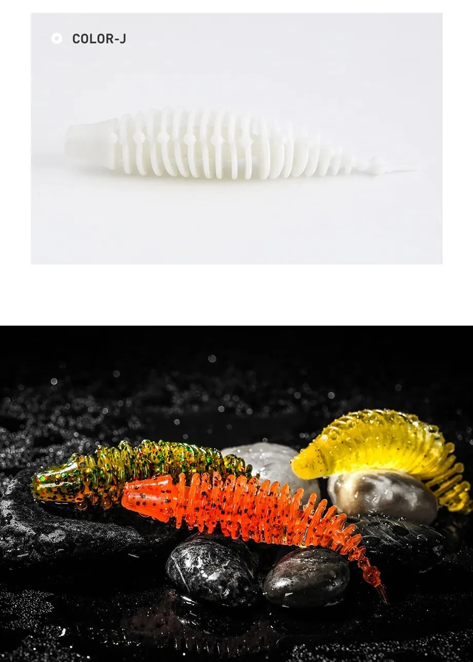 3. Buena palatabilidad-Hecho de material de calidad con buena palatabilidad, sabe como un gusano real, hace que el pescado cuelgue más tiempo para más hooksets positivos.4. extremadamente realista vida señuelo-diseño del cuerpo realista, cuerpo flexible con realista, agarrando la atención de los peces.