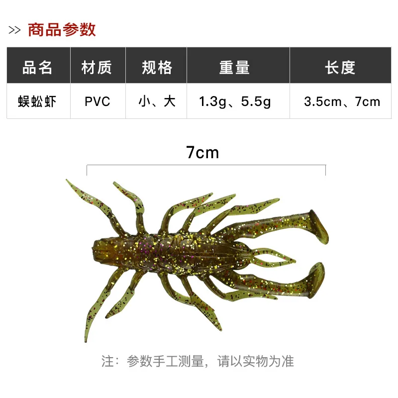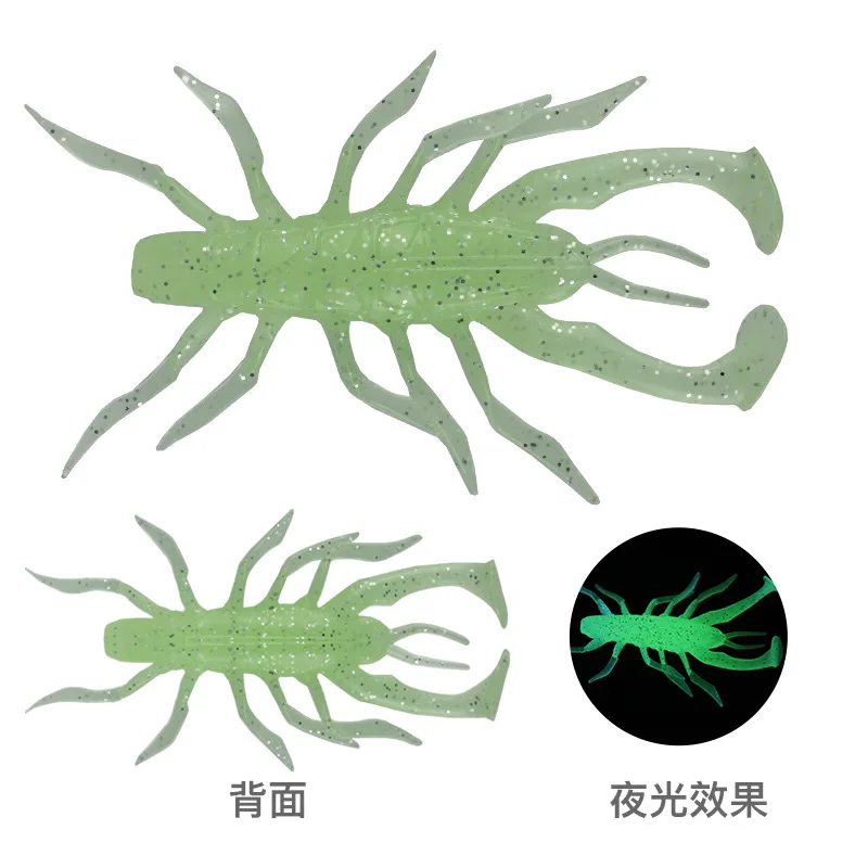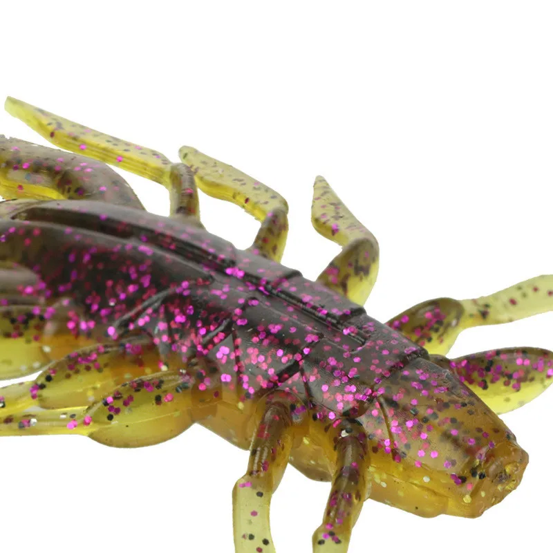 Señuelo de pesca suave, cebo Artificial de ciempiés, camarones de hierba grande con lentejuelas reflectantes, paquete de 5 piezas, 3,5 cm, 7cm