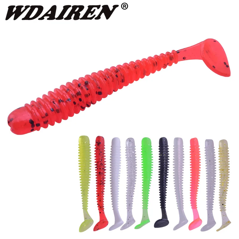 Señuelo de pesca suave, cebo de silicona, cola en T, Swimbait, lubina, sábalo, Wobbler, 7cm, 10 unidades por lote