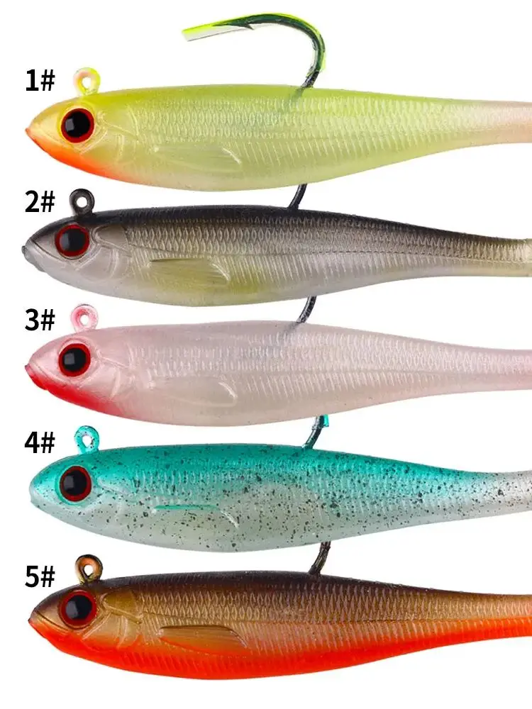 Señuelo de Pesca suave con cola en T, JIG HEAD Shad, Swimbaits, cebos de silicona, Pesca de lubina, carpa, dorado, agua dulce, agua salada, Pesca de plástico
