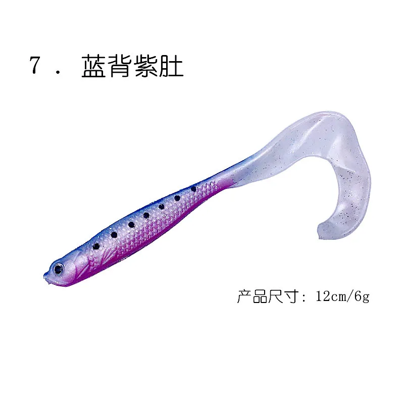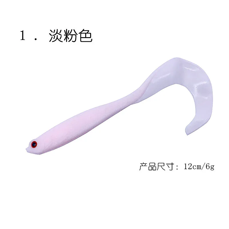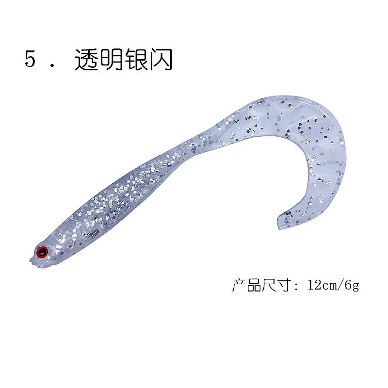 Señuelo de pesca suave de cola larga, 5 piezas, 12cm/6g, cebo suave, señuelo de Pesca de Mar, brillo luminoso, buena calidad