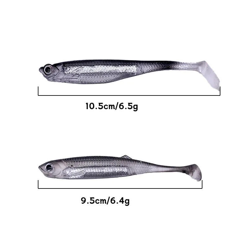 Señuelo de pesca suave con cola larga, cebo blando 3D, para lubina, caballa, flecha, croaker, bacalao, 5 piezas, 10,5 cm, 6,5 g, 6,4 g