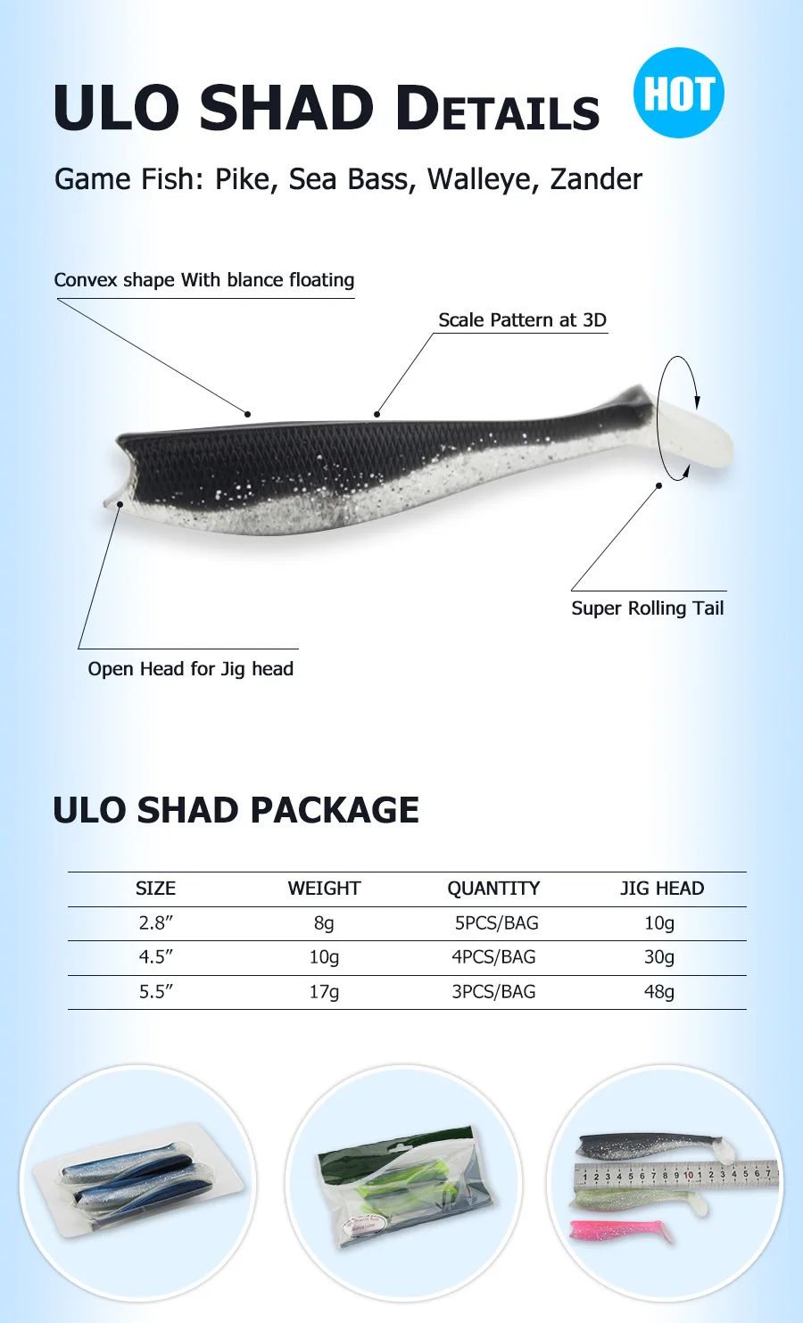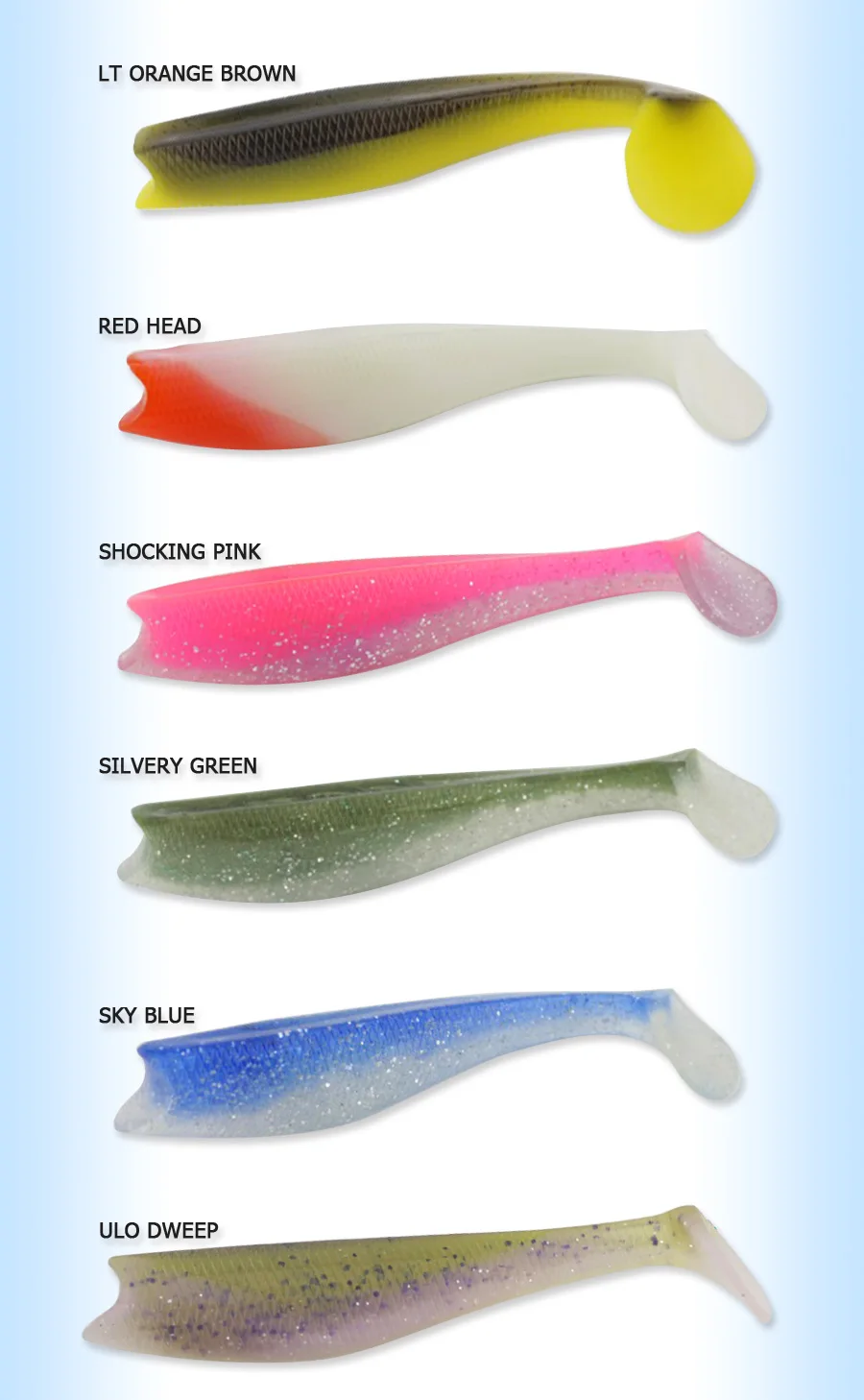 Brillo, polvo noctilucente y sabor disponibles.3).Acerca del uso de señuelos blandos de diferentes estilos.