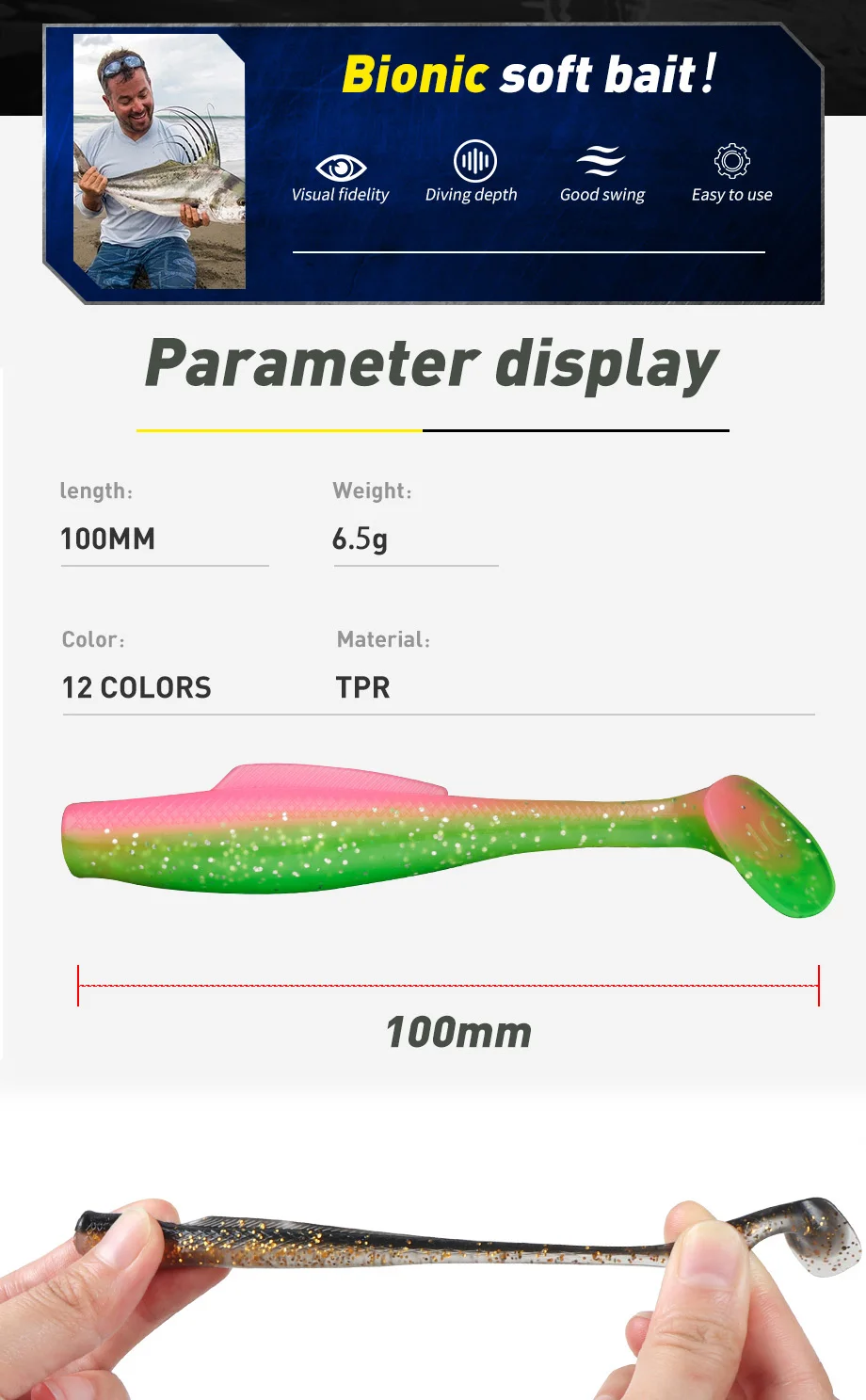 Señuelo de pesca suave flotante, 5 unids/lote, 100mm 6.5g, cebos de plástico TPR, cebo de baño suave de 100mm, señuelo de Jigging, cebos artificiales, gusano suave