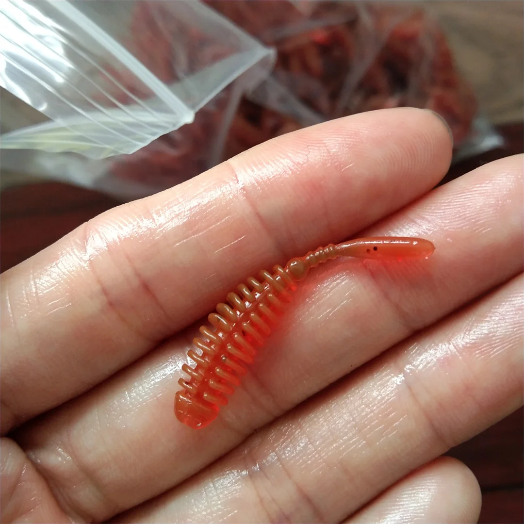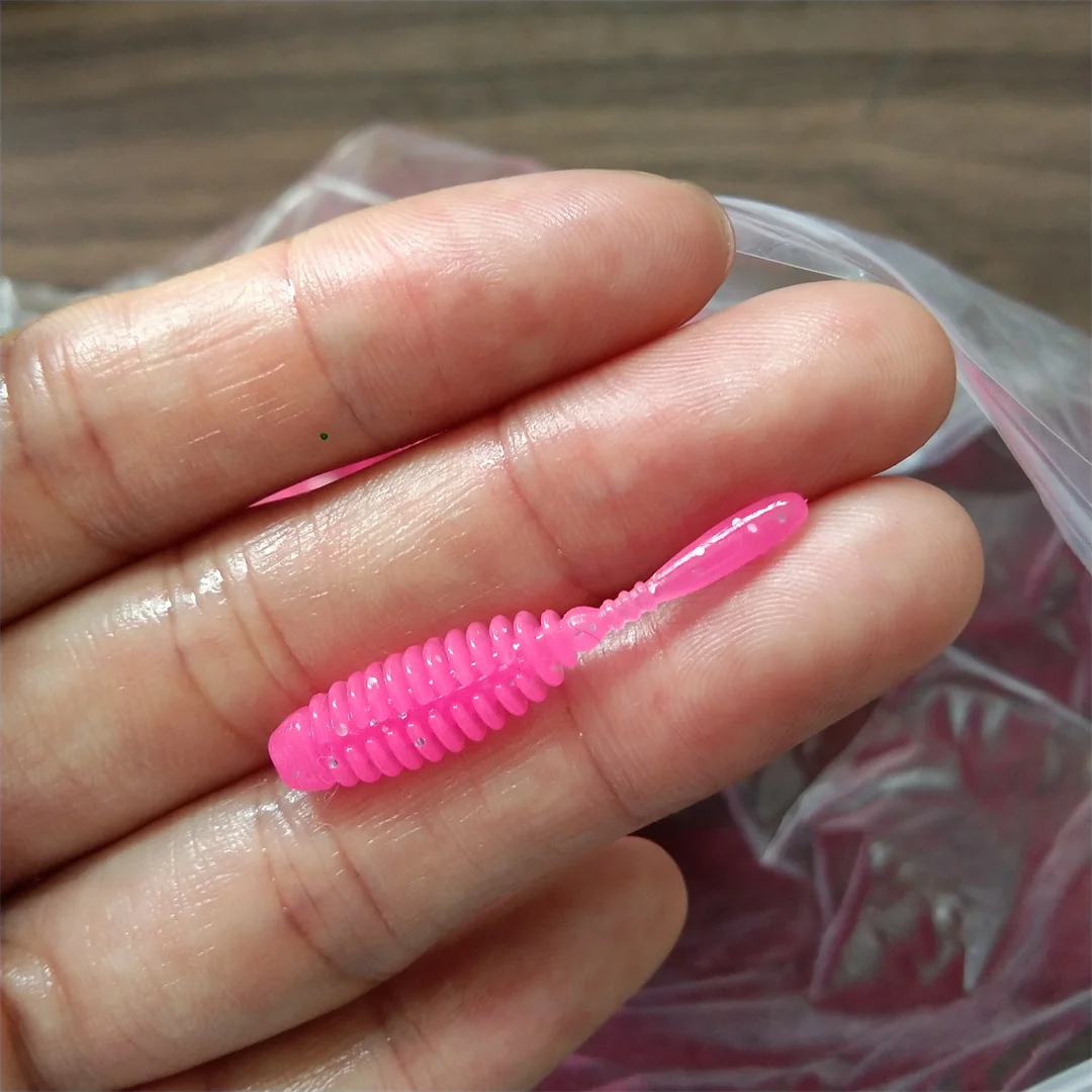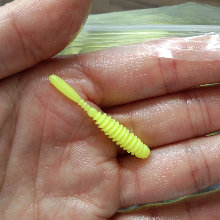 Señuelo de Pesca suave de gusano, 100 piezas, Ajing, 3,5 cm, 0,28g, aditivo, cebo Artificial de silicona, aparejos de Pesca de carpa