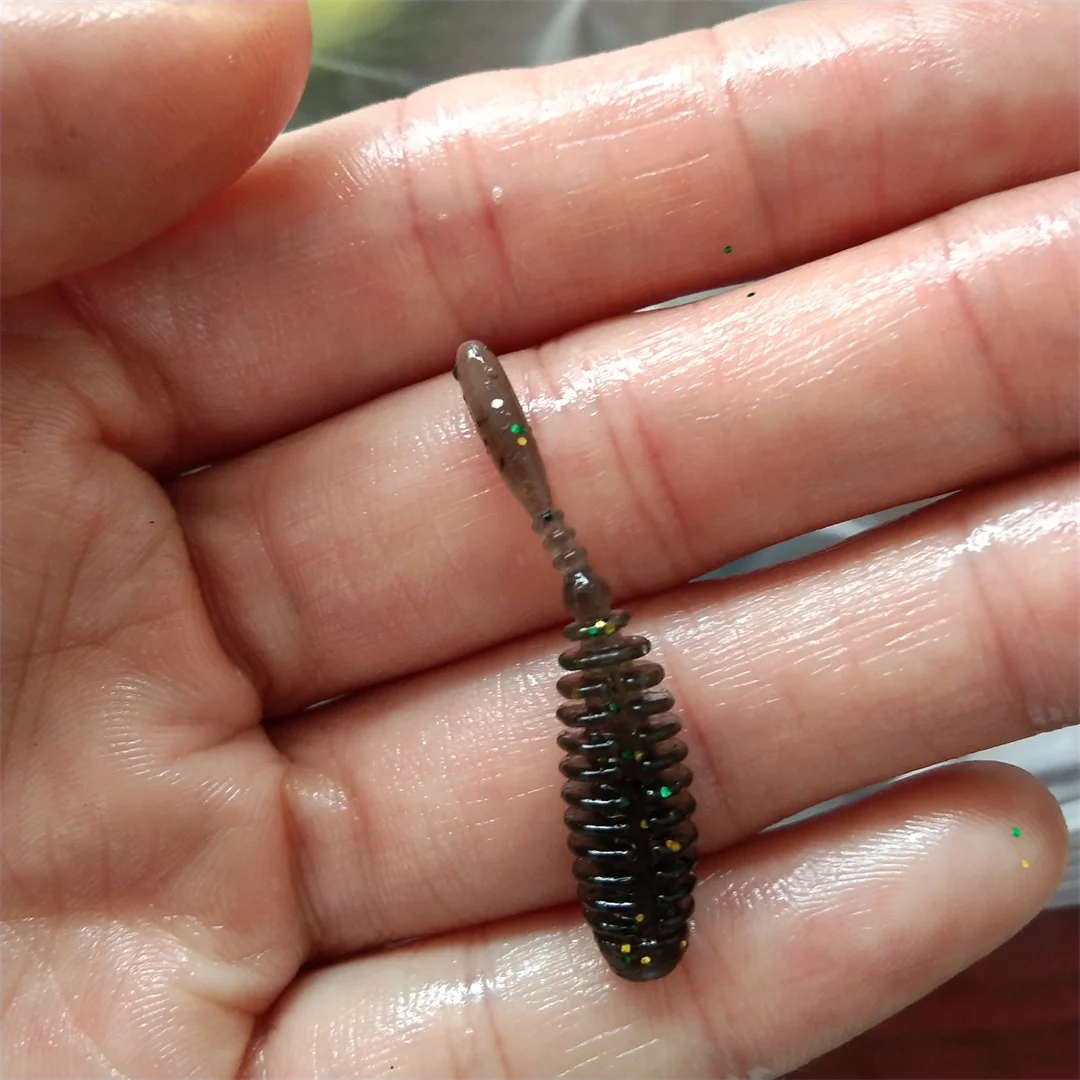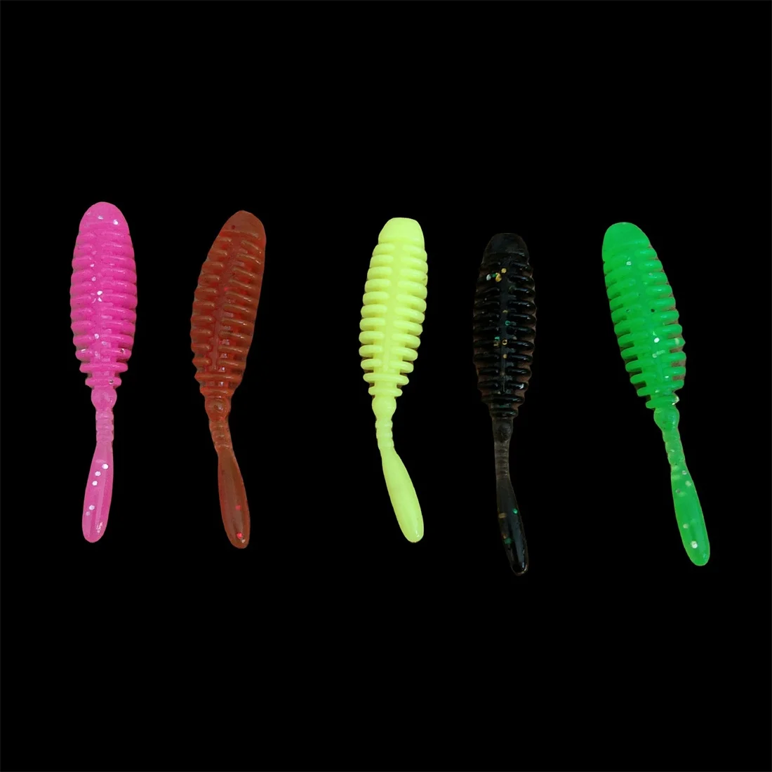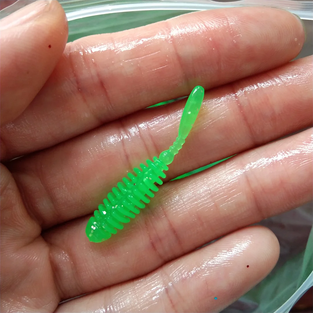 Señuelo de Pesca suave de gusano, 100 piezas, Ajing, 3,5 cm, 0,28g, aditivo, cebo Artificial de silicona, aparejos de Pesca de carpa