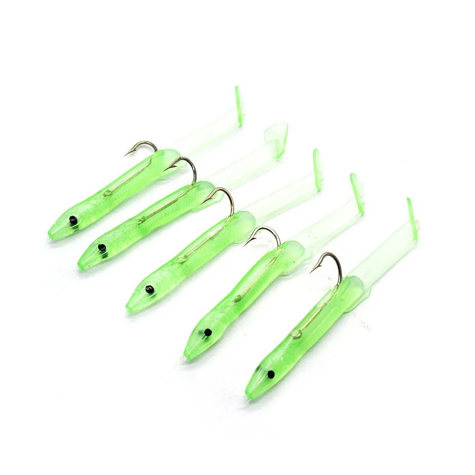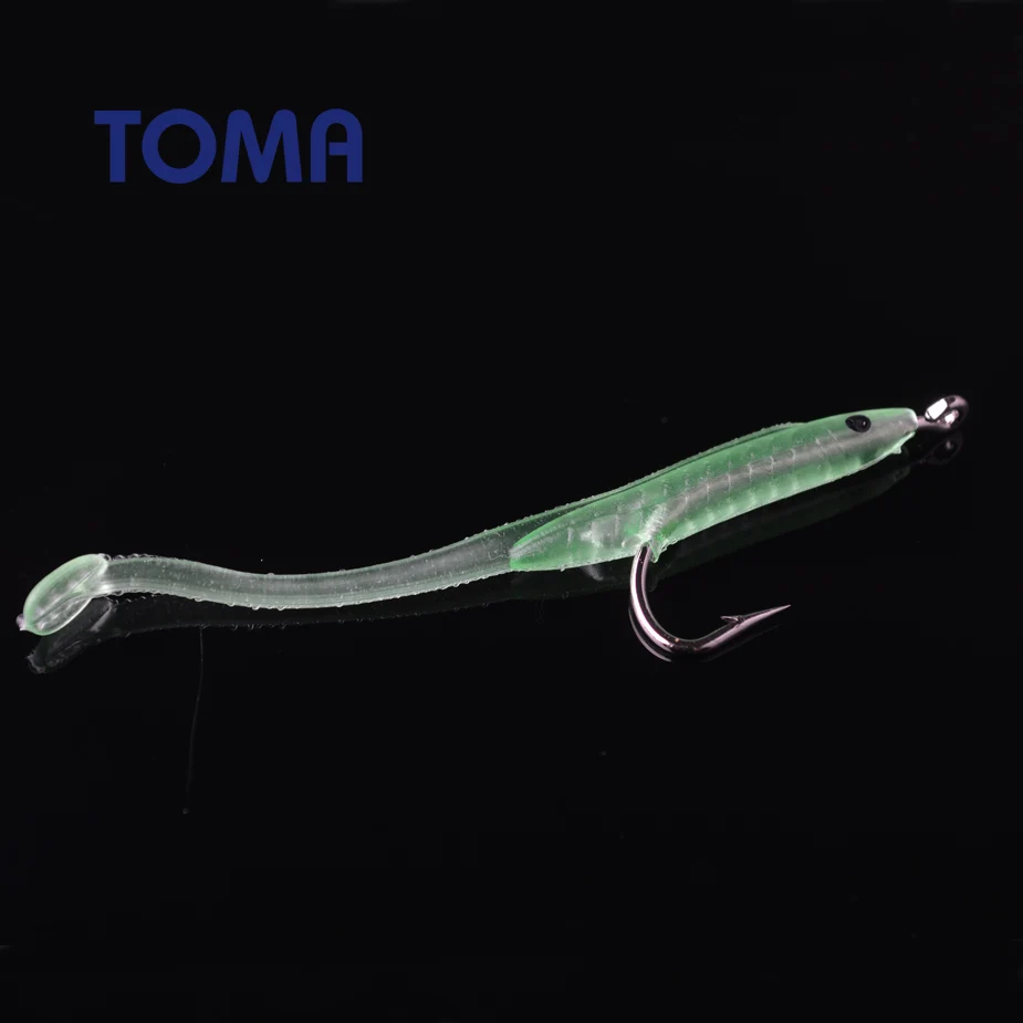 Señuelo de pesca luminoso de cebo suave de 10 Uds. Con anzuelo, Anguila que brilla, caballa oscura, pargo de pesca, salmonete de cabeza plana, cebo Artificial de 6, 8 CM1 G