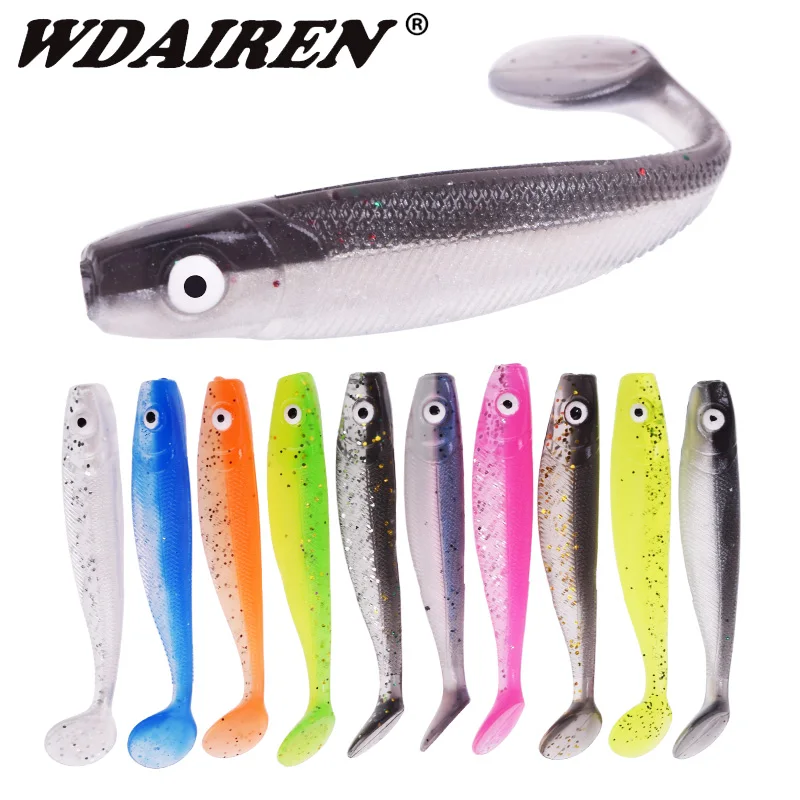 10 piezunids/lote ojos 3D señuelo suave de Pesca gusanos de silicona cebo de goma Artificial cebo de Lucio Minnow Wobblers Swimbaits Pesca aparejo