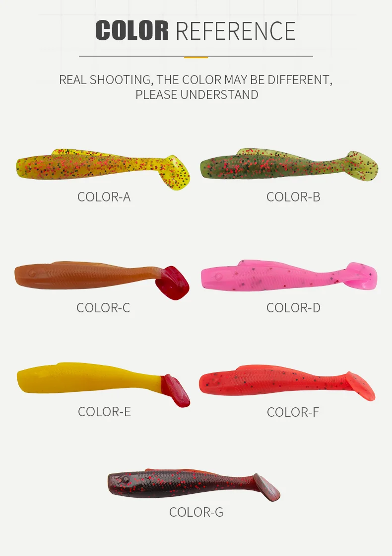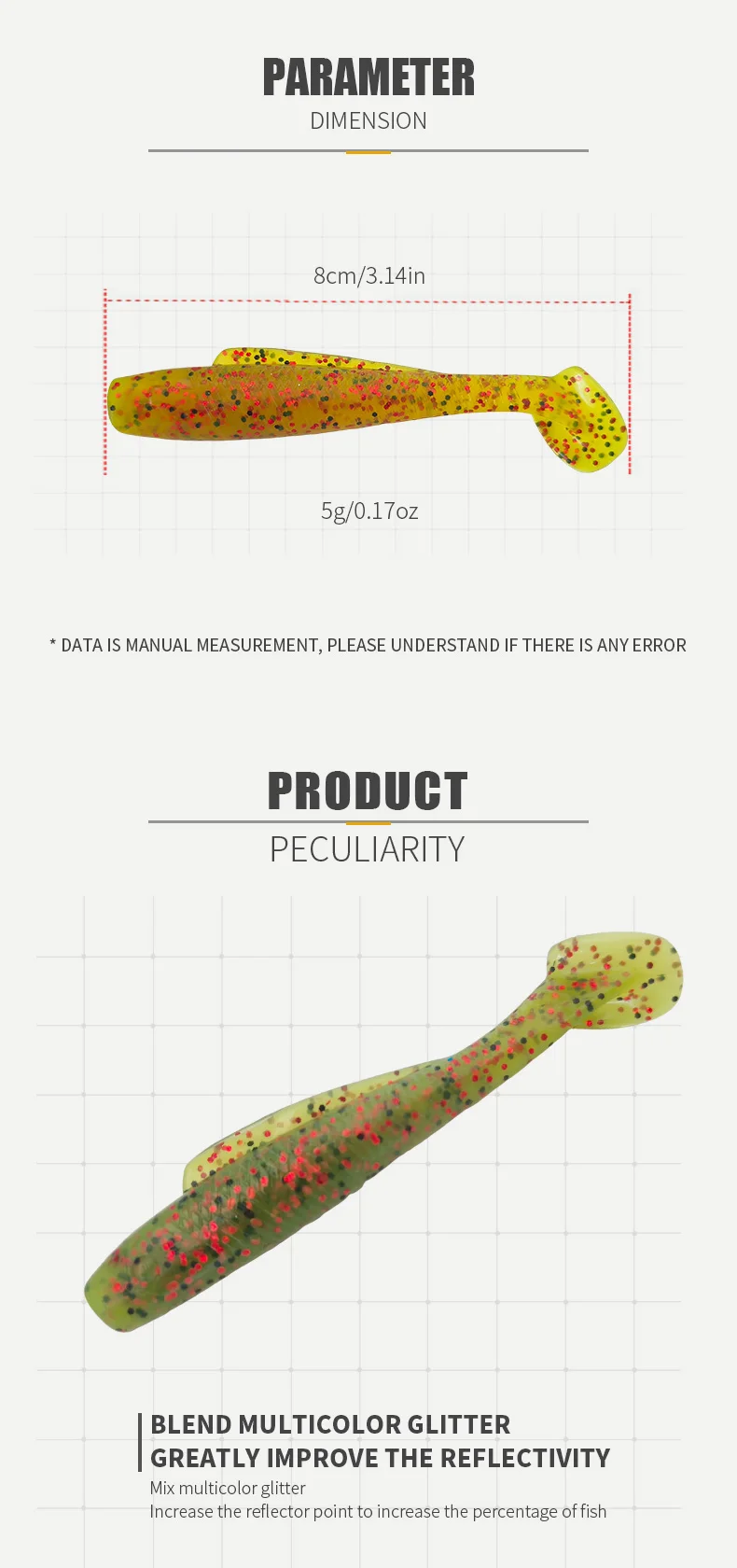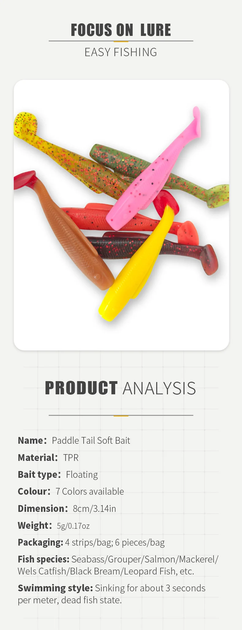 Señuelo de pesca suave con paleta en T flotante, 4 Uds., 8cm, 5g, Isca, gusano Artificial, Swimbait de silicona, TPR, lubina, trucha, aparejos de pesca Wobbler
