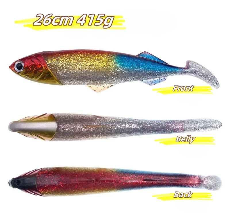 Señuelo de Pesca suave de pez grande, 26cm, 415g, Jigging, Trolling, para agua salada, aparejos de Pesca de mar, Wobblers, cebo Artificial, 1 ud.
