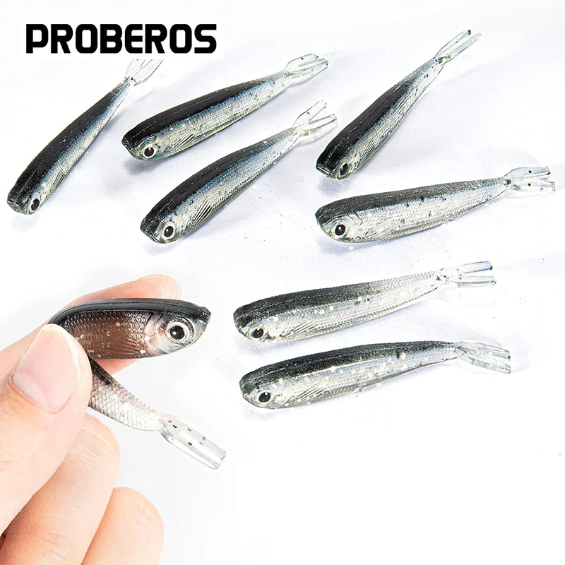 Señuelo de pesca suave de plástico, 5 uds., cola bifurcada realista, cebos de pesca de pececillo, aparejos para agua salada y agua dulce, tipo de pez dorado