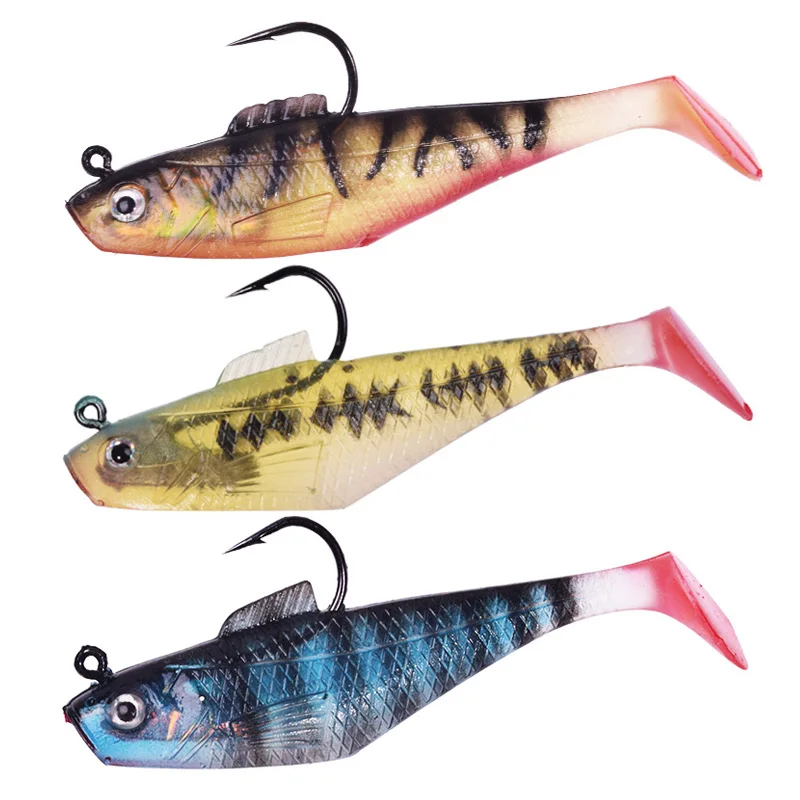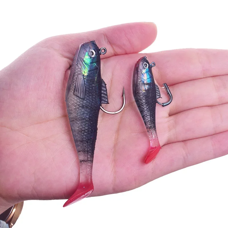 1 señuelo de pesca suave de silicona, ganchos con cabeza de plantilla de 7,5cm y 5cm, Wobblers, cebo de goma Artificial para lubina, carpa, Lucio, aparejos de pesca