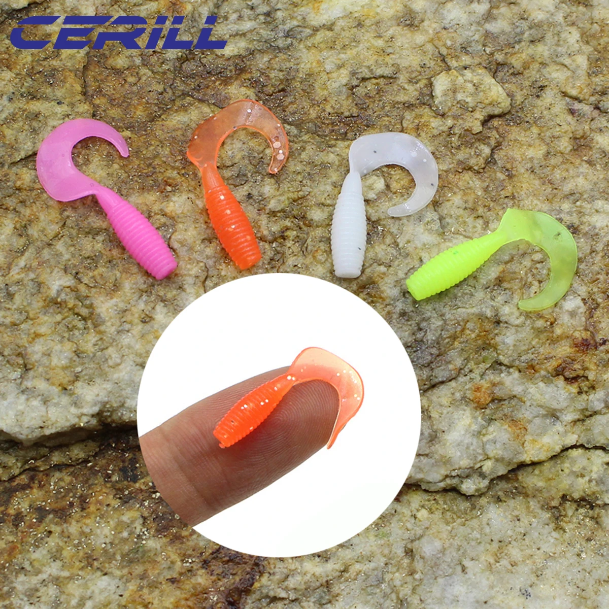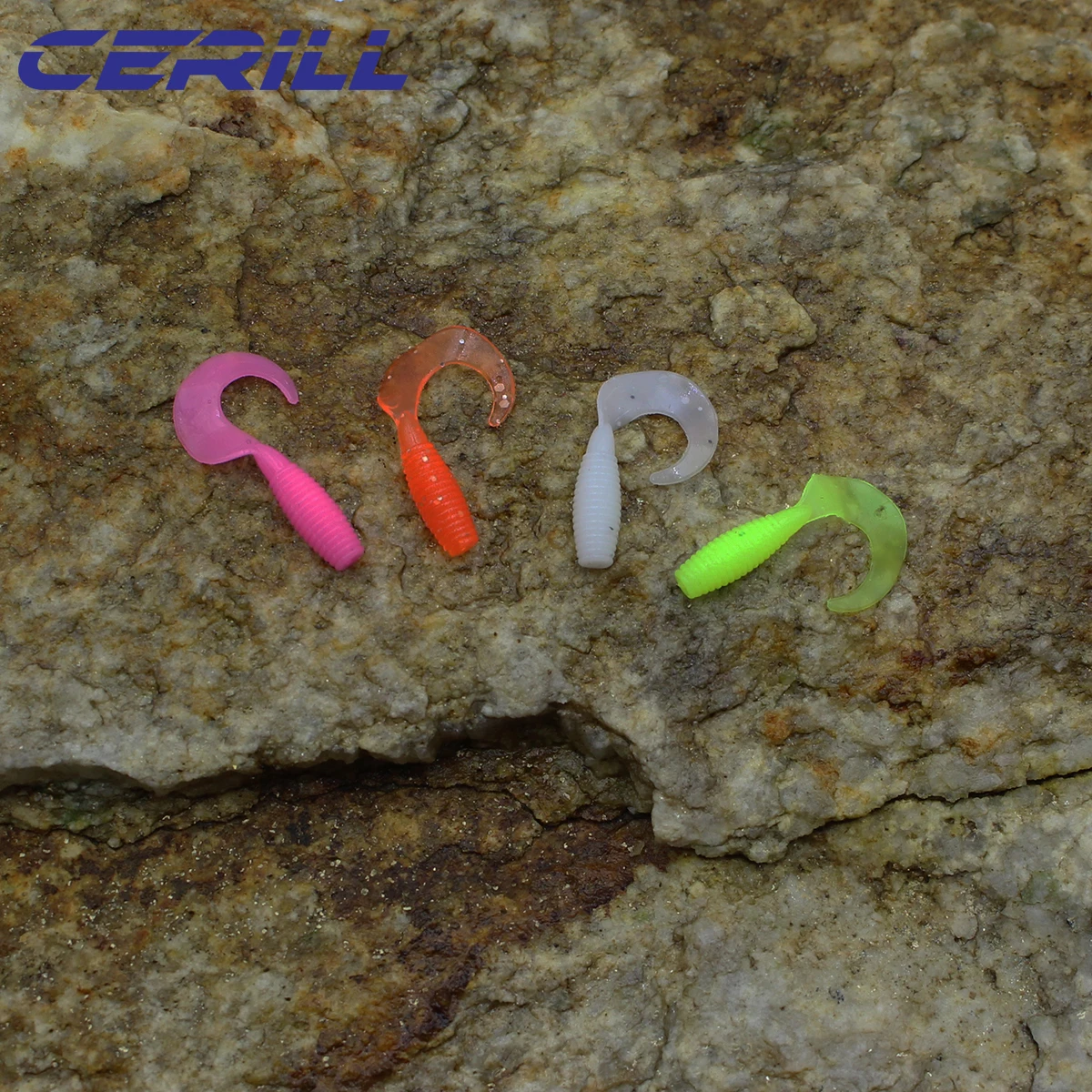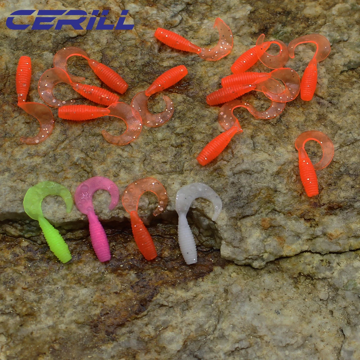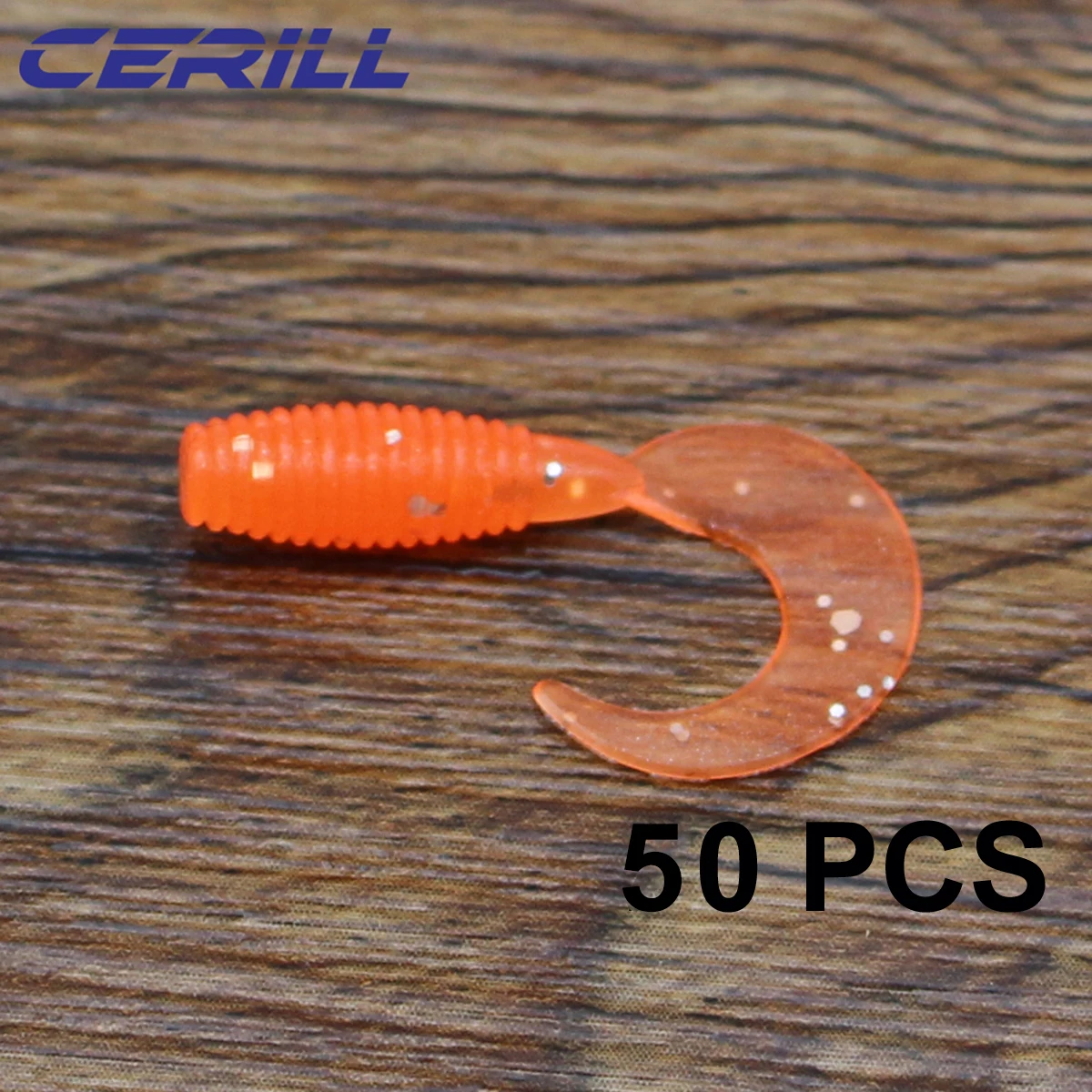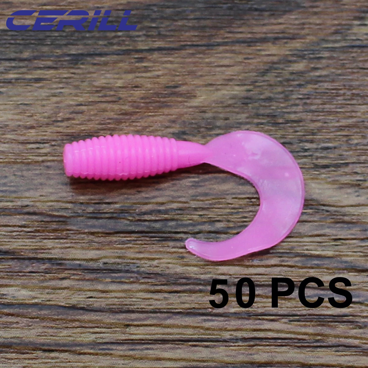Lot 50 Cerill 25mm Volume Tail Grub Bait Jigging Wobbler Soft Fishing Lure Silicone Artificial Carp Bass Swimbait Accessories