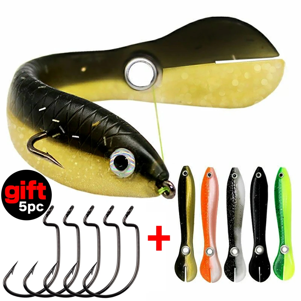 Señuelo de pesca suave de silicona, cebos artificiales pequeños con gancho y caja, 6g, 10cm, 5 unids/lote