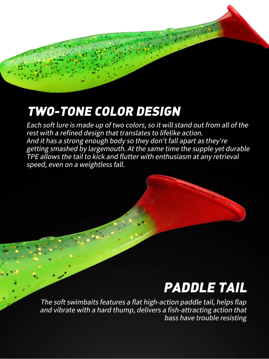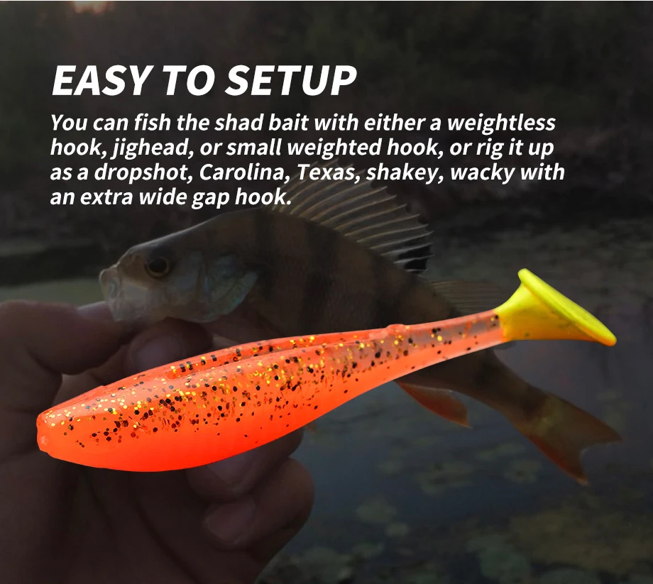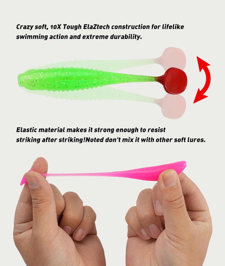 El señuelo suave proporciona una acción rápida y realista que imita el movimiento de natación del cebo común en un tamaño más pequeño.