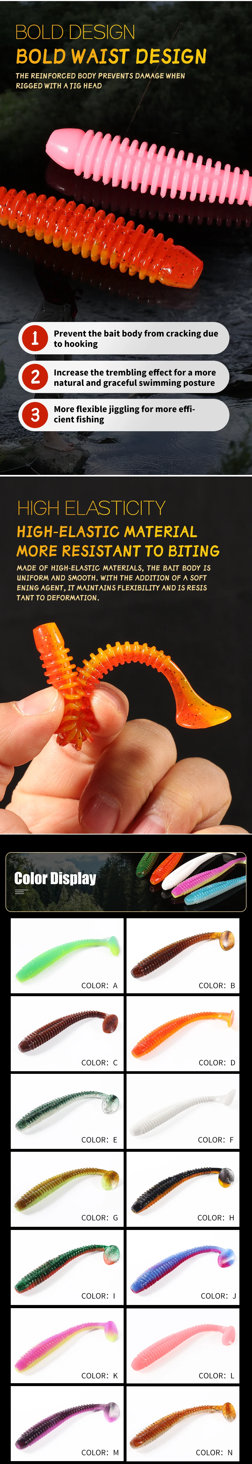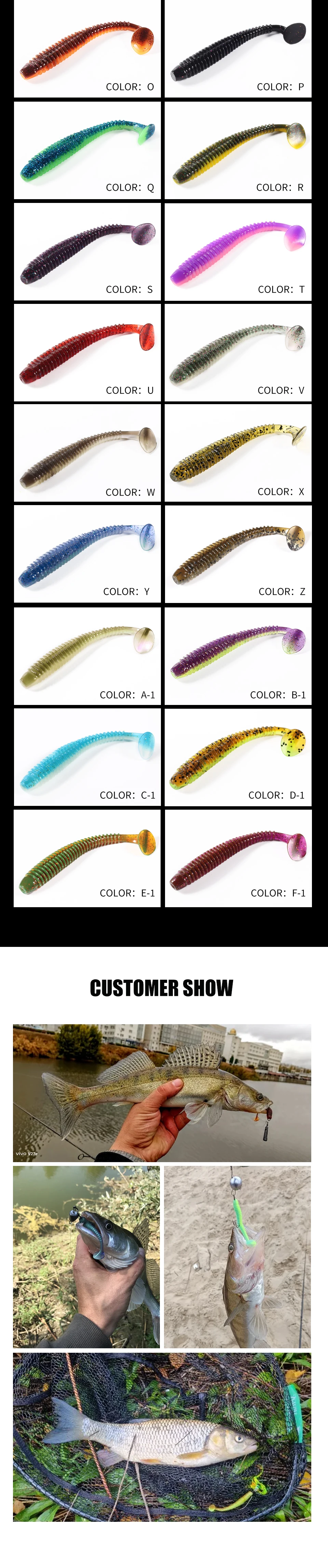 Los cebos son simplemente bombas!!! La goma es suave. Hay un olor de un atractivo. Estoy cien por ciento seguro de que lo atraparán!!! Definitivamente lo recomiendo!! !