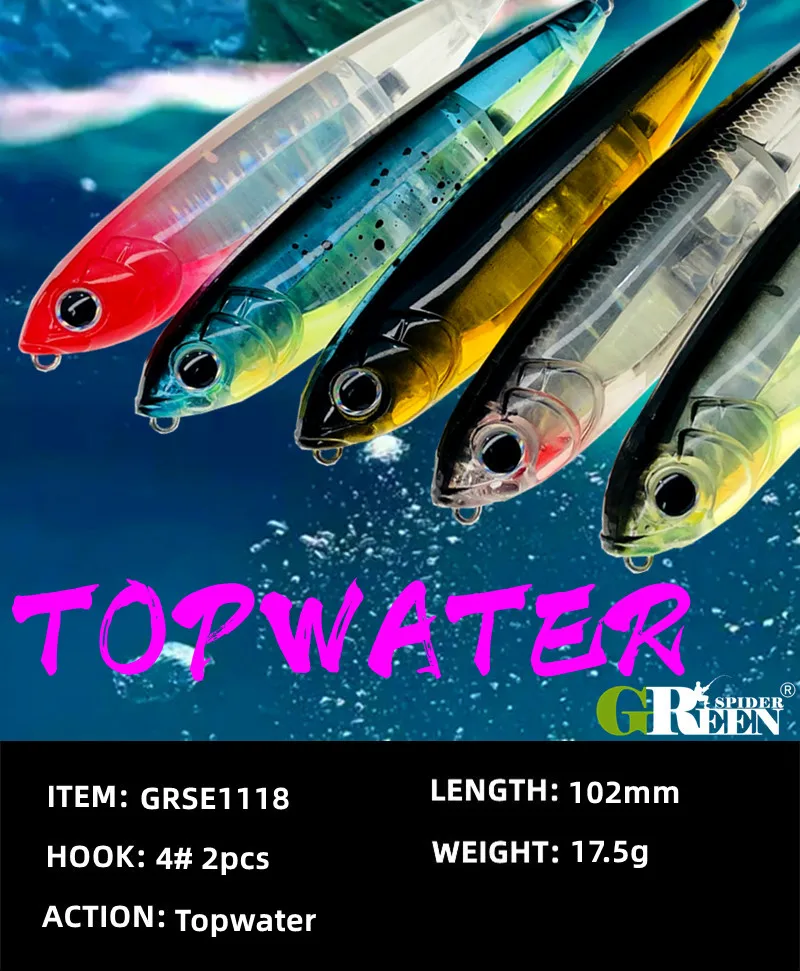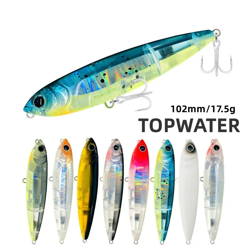 Señuelo de pesca con superficie de lápiz Topwater, 102mm, 17,5g, caminar al perro, cebo duro Artificial de agua salada, andador de plástico para lubina