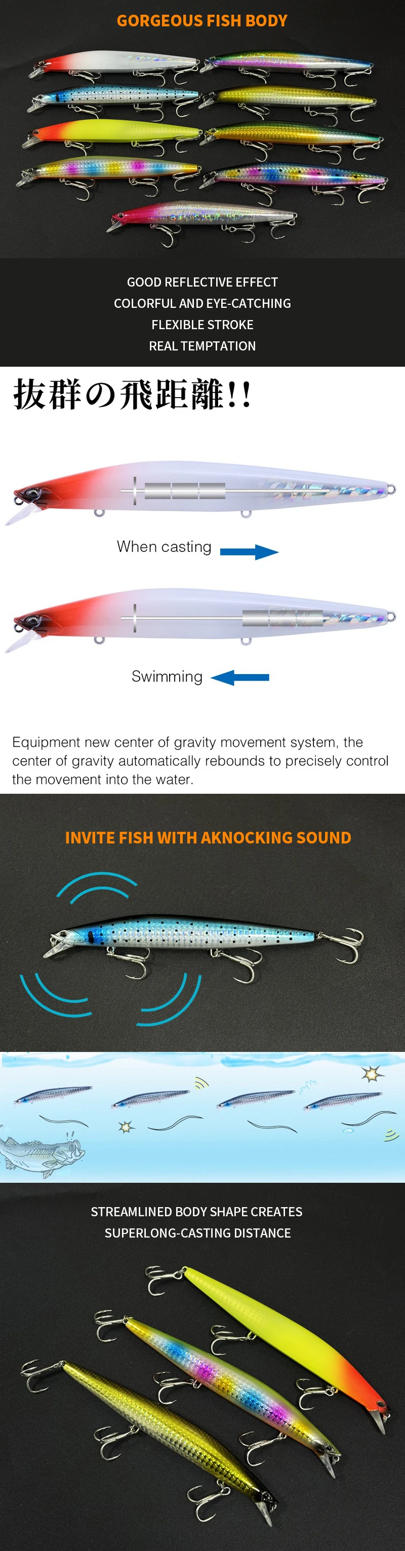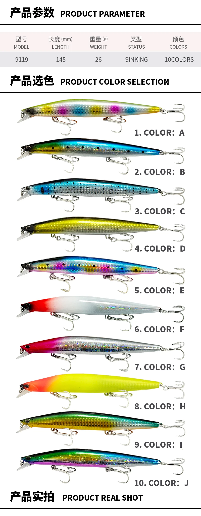 Señuelo de Pesca superior que se hunde Minnow 140S 140mm 26g agua salada lubina negra señuelos de Lucio cebos duros de fundición larga accesorios de Pesca