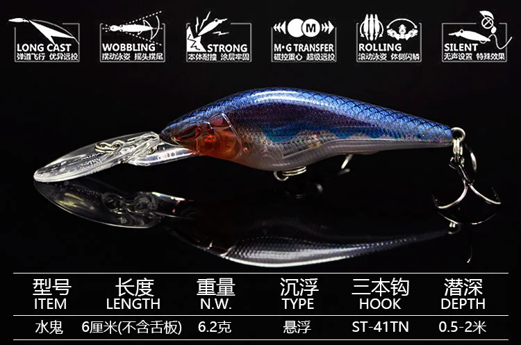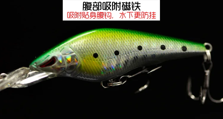 Señuelo de pesca suspendido Minnow, tablero de lengua larga, Wobbling flotante, gravedad magnética, señuelos artificiales, cebo duro