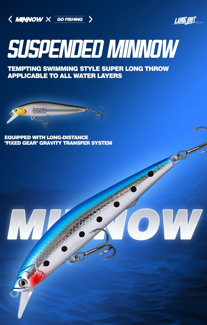 Señuelo de Pesca TAIYU de 10 cm y 9.5 g, Señuelo de Suspensión Tipo Minnow, Lanzamiento Largo, Retención de Mosca Muerta, Cebo para Pesca de Lubina Blanca