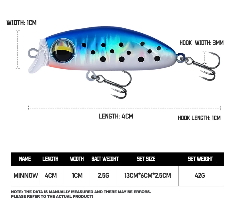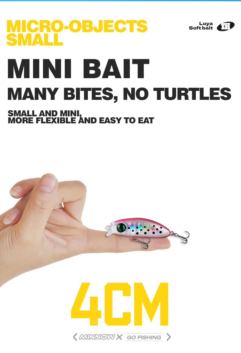 Señuelo de pesca TAIYU, 4cm, 2,5g, Micro pececillo, Wobbler, Mini Swimbait de hundimiento lento, cebo duro Artificial con 2 ganchos, cebo falso