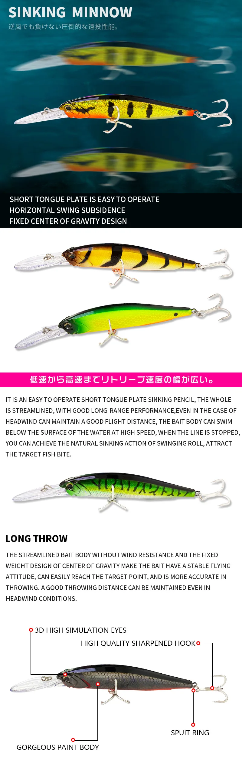 1.Cebo de alta calidad, capa láser interior y efecto de señuelo obvio para peces.