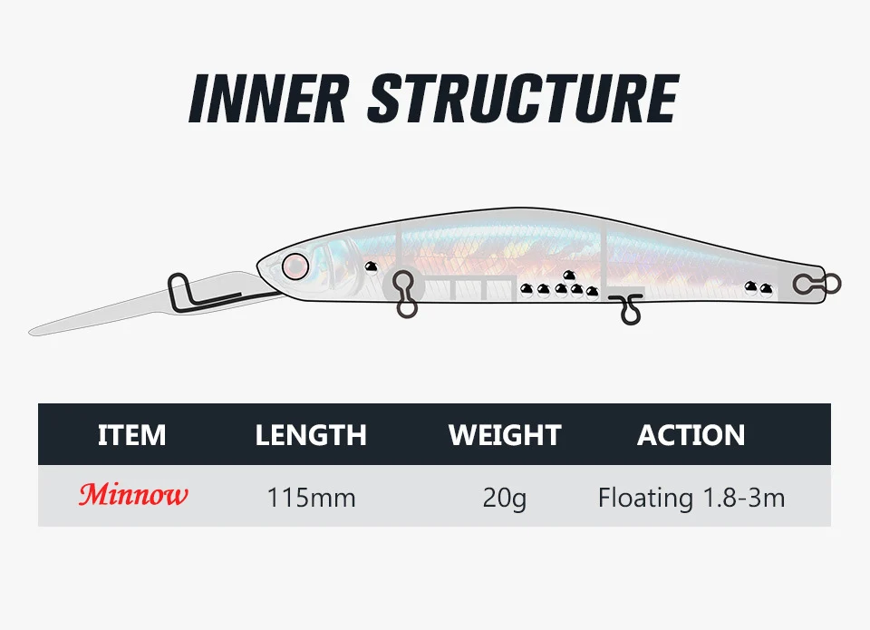 1. Cebo de alta calidad, capa láser y efecto de señuelo obvio para peces