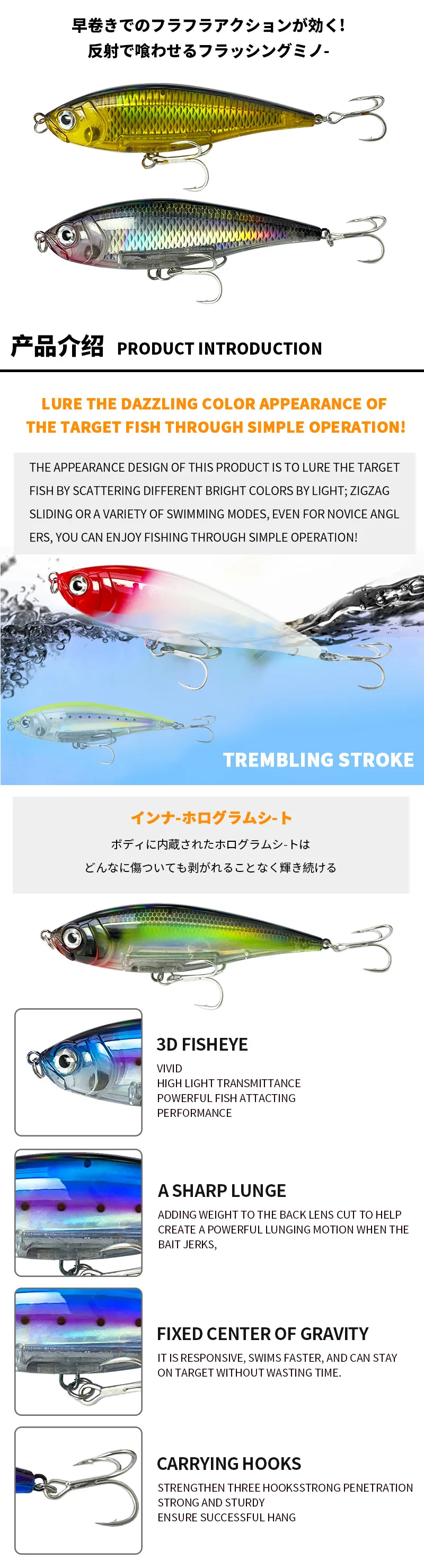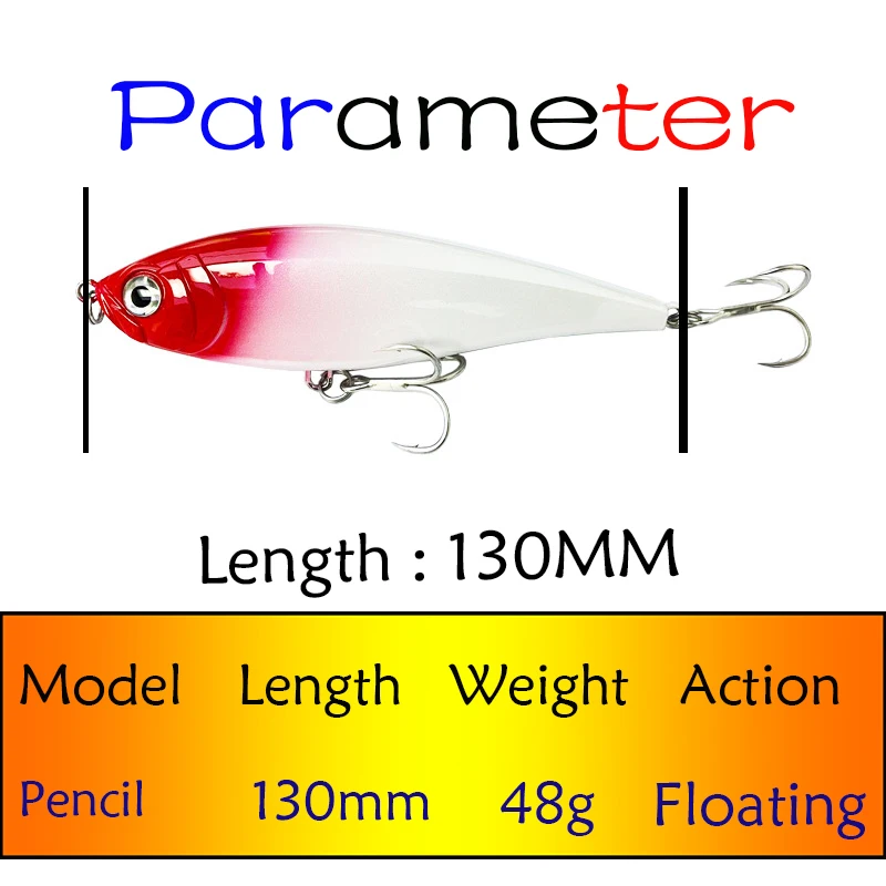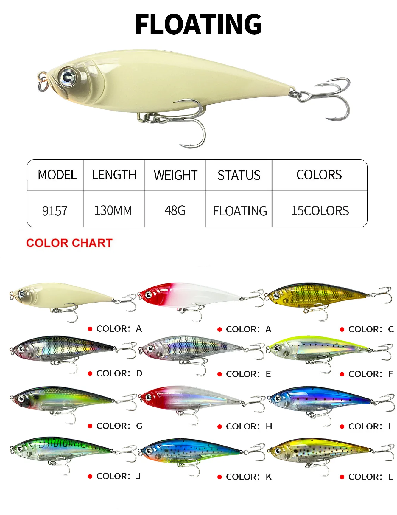 Señuelo de Pesca Testar, 130mm, 48g, gran juego, cebo tipo lápiz flotante, cebo láser de curricán Artificial de fundición larga para Pesca de atún GT