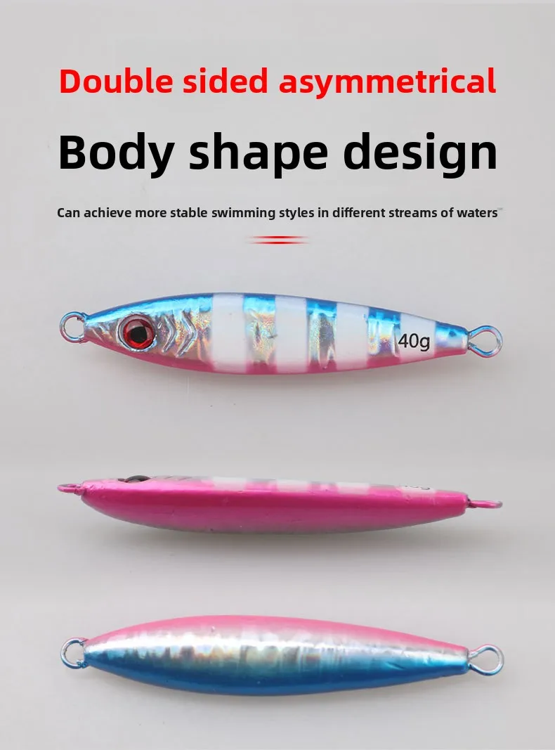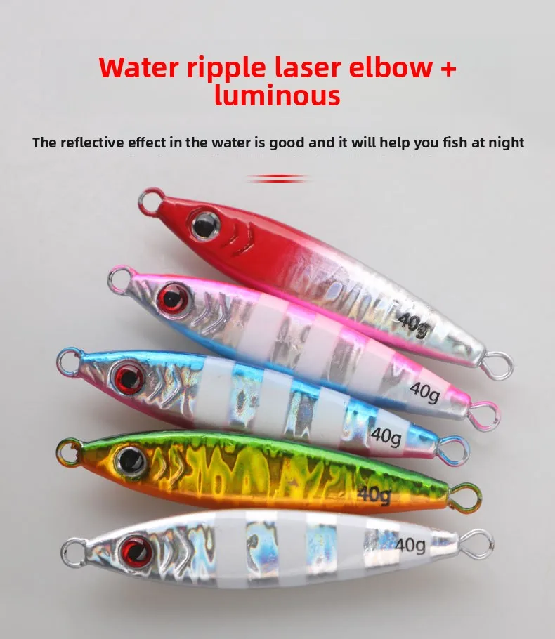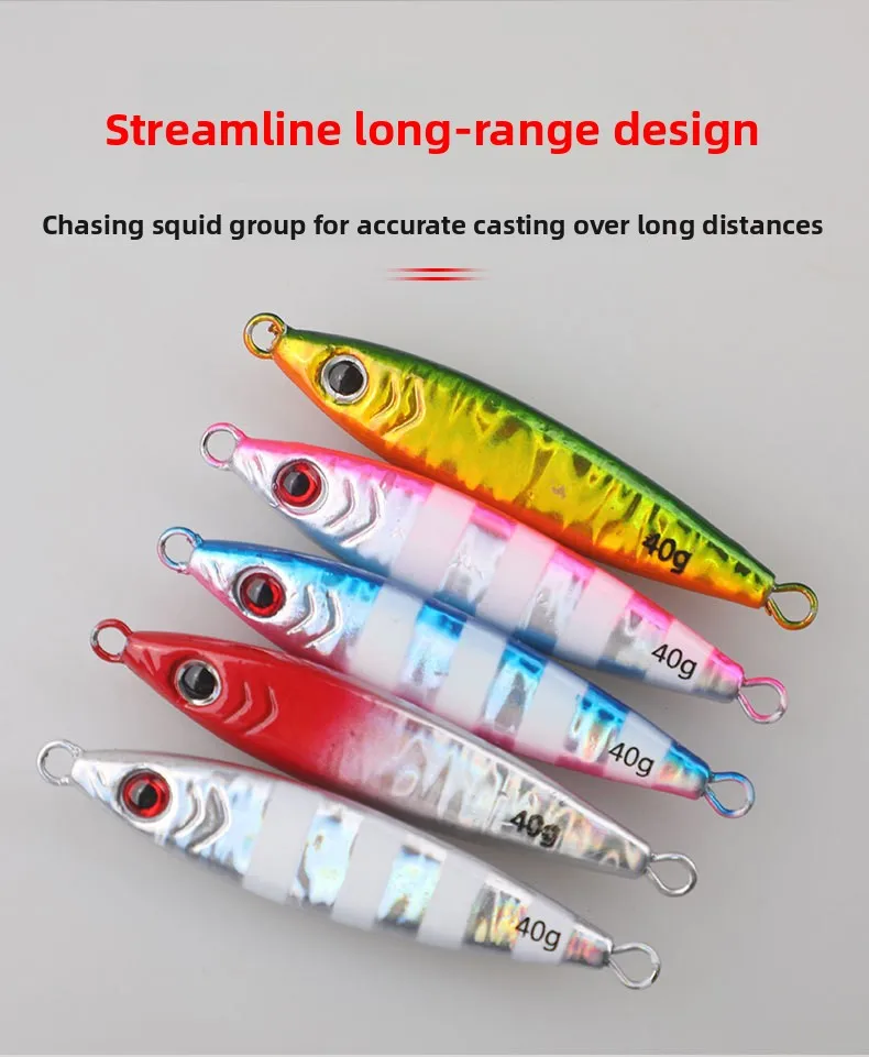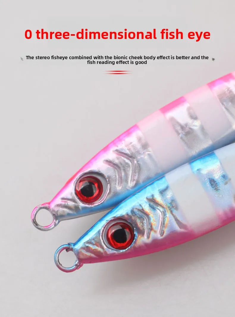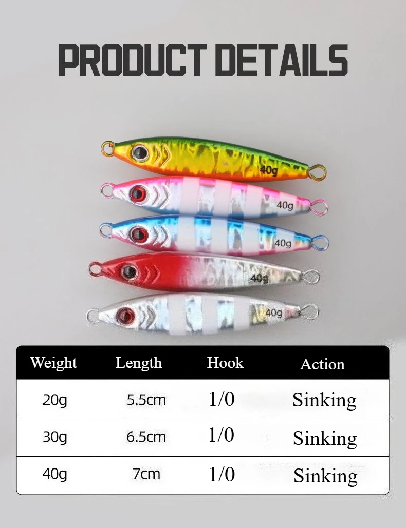 Plantilla de metal con gancho de cuchilla Peso: 20 g 30 g 40 g Paquete: bolsa de plástico 1 ud. Características:Diseño de ojos de 1 a 3D: el señuelo de pesca presenta ojos 3D realistas, lo que mejora su apariencia realista y aumenta su efectividad para atraer peces, lo que lo convierte en una herramienta esencial para cualquier entusiasta de la pesca.2. Cuerpo colorido vibrante: diseñado con patrones brillantes y coloridos, este señuelo destaca en el agua, lo que facilita captar la atención de los peces y mejorar sus posibilidades de lograr una captura exitosa.3. Rendimiento de acción: su acción realista y RÁPIDA en el agua imita el movimiento de presas naturales, atrayendo a los peces a atacar y brindando a los pescadores una experiencia de pesca más productiva.4. Atracción visual: los excelentes efectos visuales del señuelo, combinados con su acabado brillante, crean una apariencia irresistible que atrae peces desde la distancia, ayudándole a mantenerse por delante en su juego de pesca.5. Uso versátil: adecuado tanto para lago como para pesca, este cebo artificial está diseñado para lanzamiento en tierra y se puede utilizar eficazmente en diversos entornos de pesca.Nota:1.El color real del artículo puede ser ligeramente diferente al de las imágenes mostradas en el sitio web debido a muchos factores como el brillo del monitor y el brillo de la luz.2. Permita una ligera desviación de medición manual para los datos.
