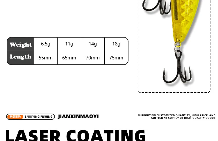 1.Cebo de alta calidad, capa láser y efecto de señuelo evidente para peces.