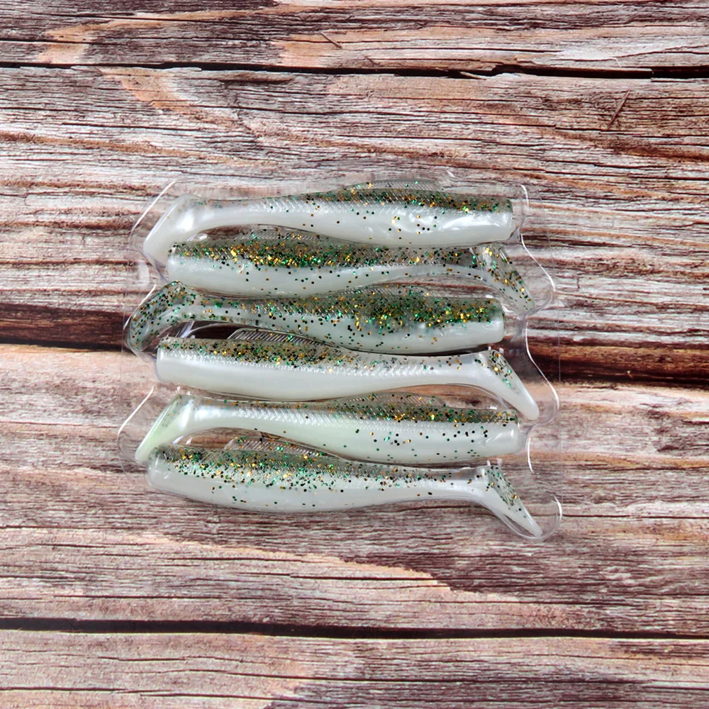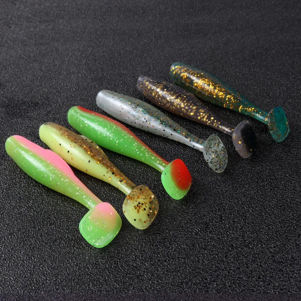 Señuelo de Pesca Testar, cebo suave de 85mm, 4,8g, paleta de silicona, cola en T, Wobblers artificiales, sábalo, anzuelo con cabeza para lubina, trucha, Pesca, 6 uds.