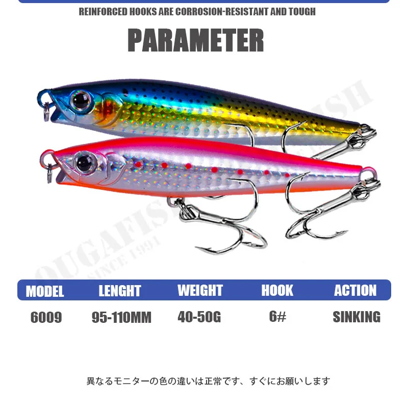 Lápiz señuelo De Pesca 40g 50g imita hundimiento Minnow cebos Wobbler hundimiento Accesorios De Pesca Carpe Leurre Artificial agua dulce