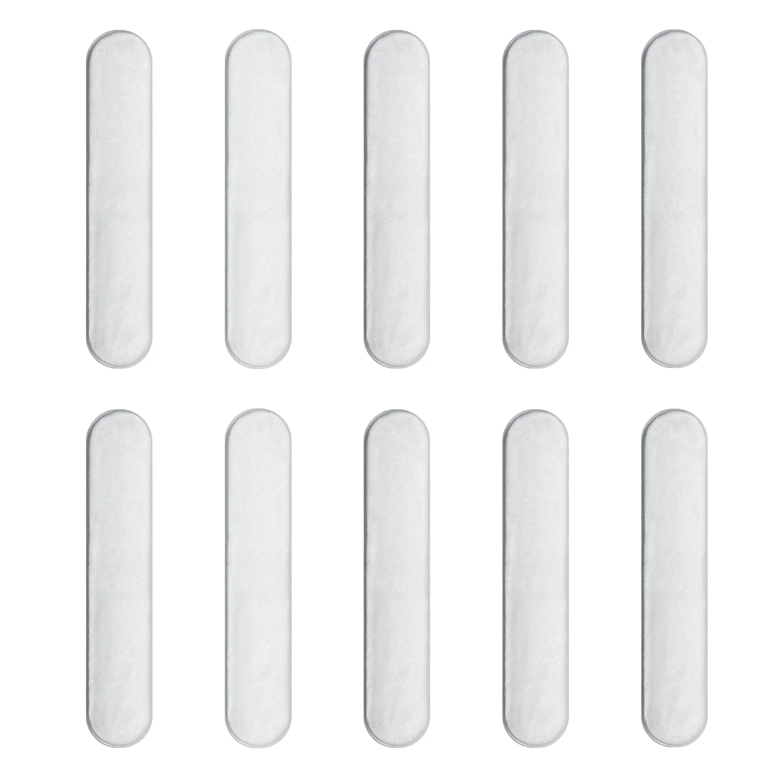 10 tiras adhesivas con peso, 0,510 oz/3 g/unidad.Longitud: 1,97 pulgadas/5 cm, ancho: 0,47 pulgadas/3,7 cm.Con brillo metálico en la superficie.
