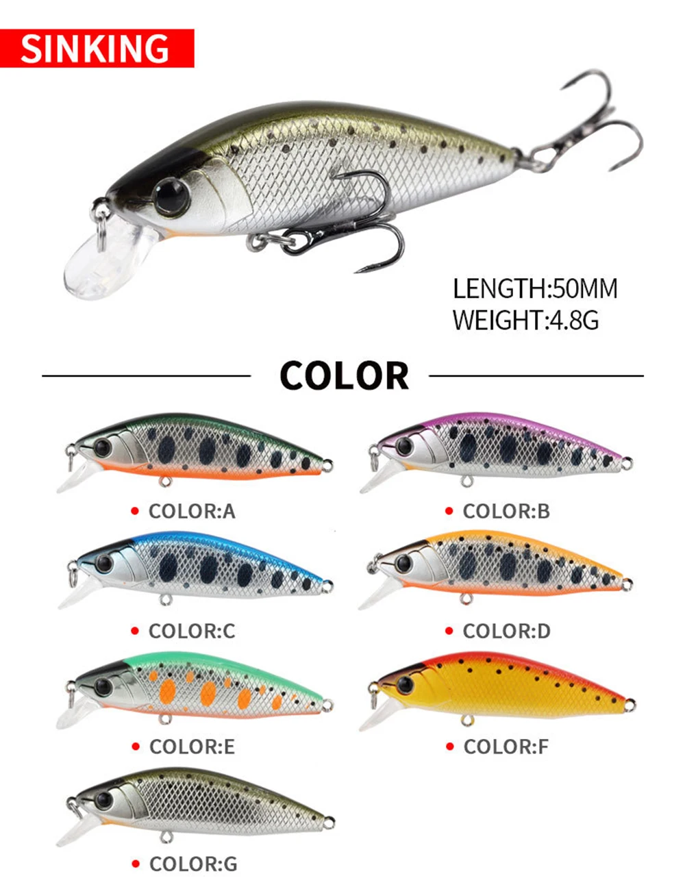 5cm 4,8G señuelo de pesca Micro Minnow Wobbler tiro largo hundimiento cebo duro Artificial Jerkbait Swimbait Mini Stream trucha bajo cebo