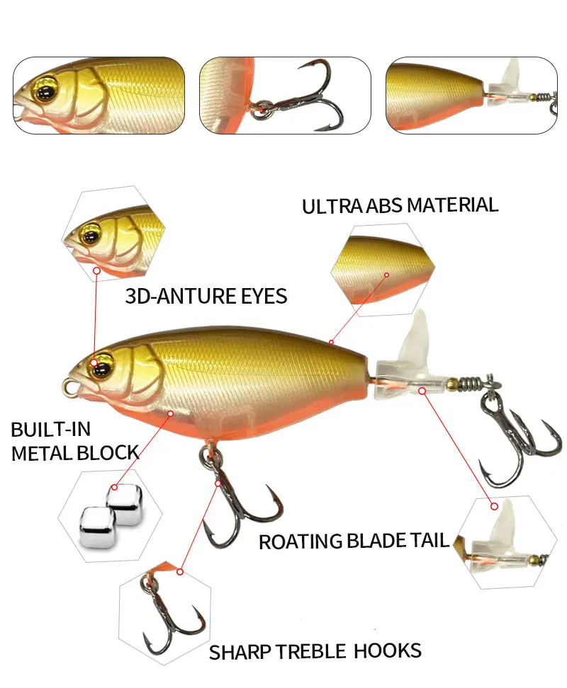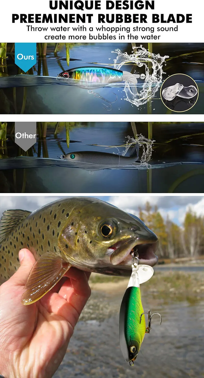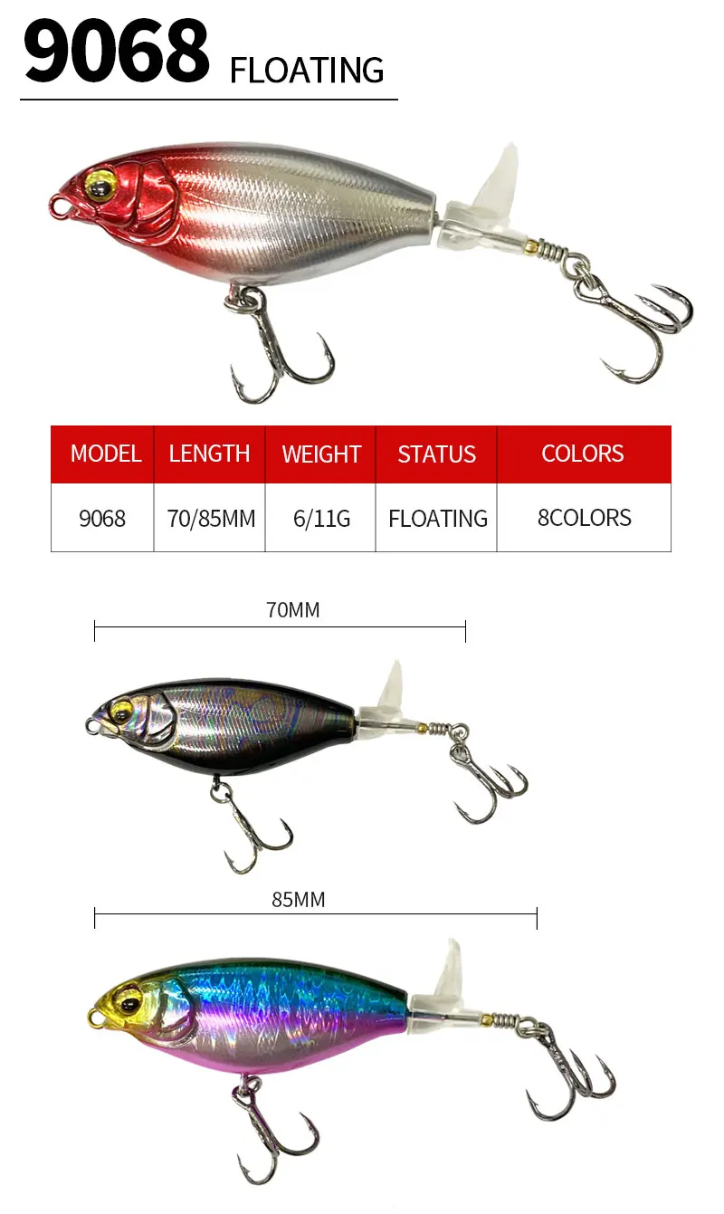 Señuelo de pesca Topwater, 1 piezas, 7cm/8,5 cm, Whopper Popper, cebo Artificial, Plopper duro, cola giratoria suave, aparejos de pesca