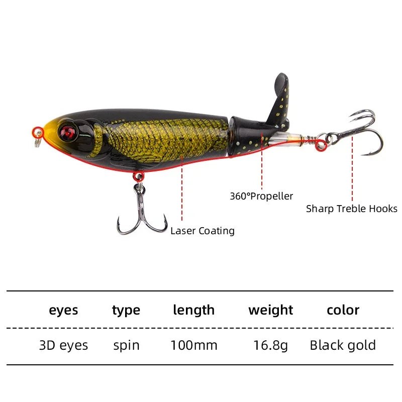 Señuelo de pesca Topwater, 100mm, 16,8g, Whopper Popper, cebo Artificial, Plopper duro, cola giratoria suave, aparejos de pesca