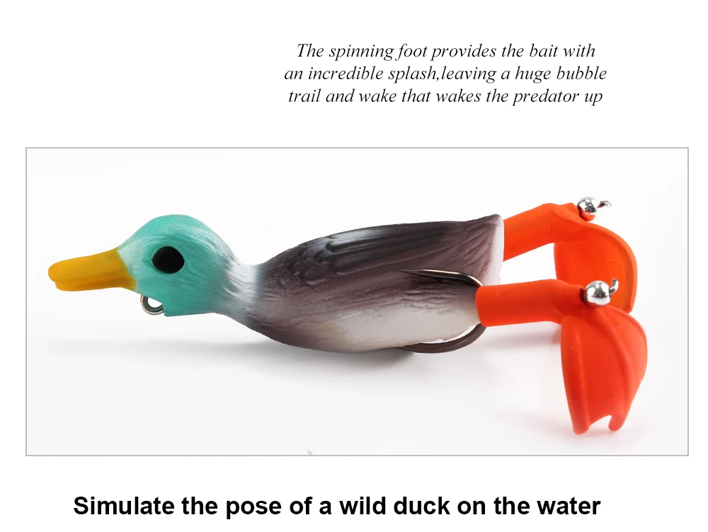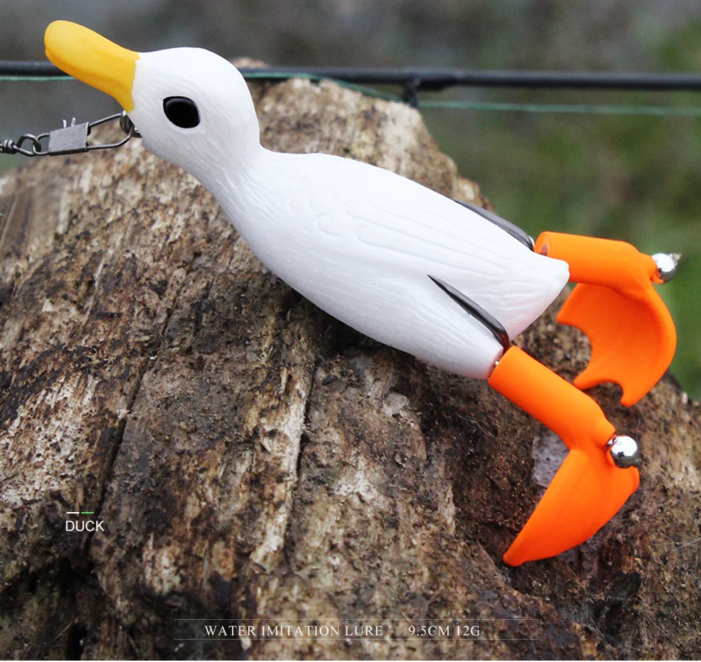 Señuelo de pesca Topwater de 11,7g, hélice de pato, ojos 3D de 9,5 cm, cebo Artificial suave con Wobblers de doble gancho para curricán