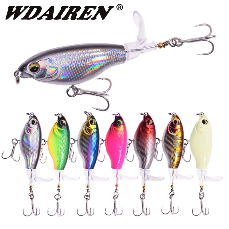 1 Uds señuelo de pesca Topwater 7.5cm 6,5g cebo duro Artificial lubina cola giratoria suave aparejos de pesca