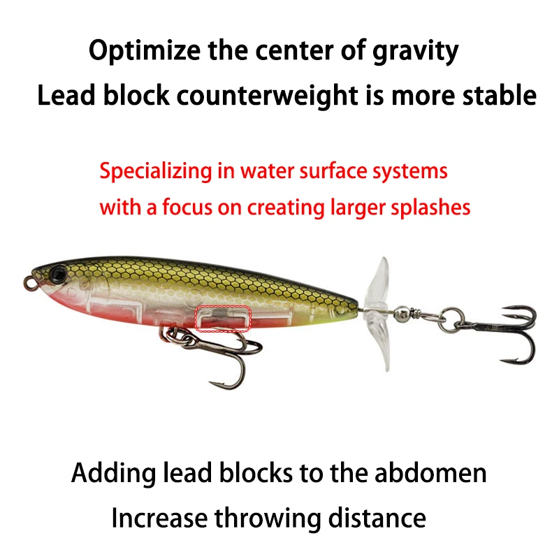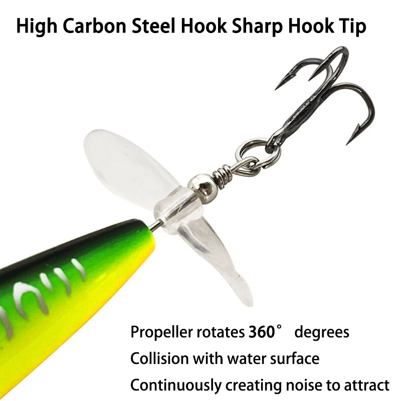 Señuelo de pesca Topwater, cebo Artificial Whopper Popper, Plopper duro, cola giratoria suave, 1 piezas, 8cm/10cm