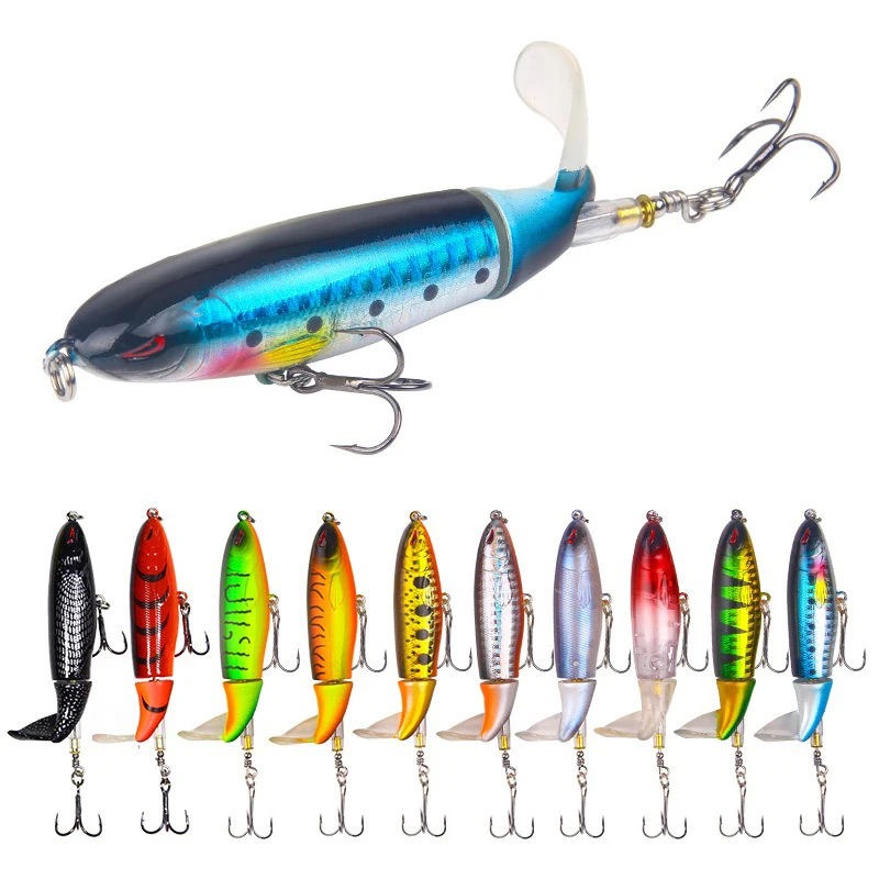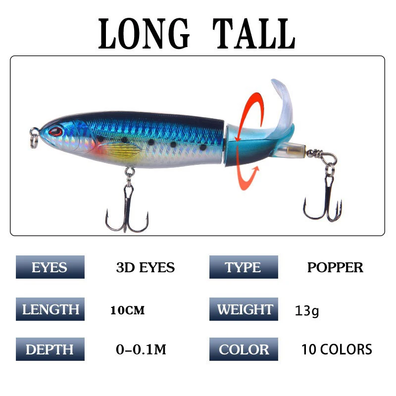 Señuelo de pesca Topwater, cebo Artificial Whopper Popper, Plopper duro, cola giratoria suave, aparejos de pesca, 10cm/14cm, 1 piezas