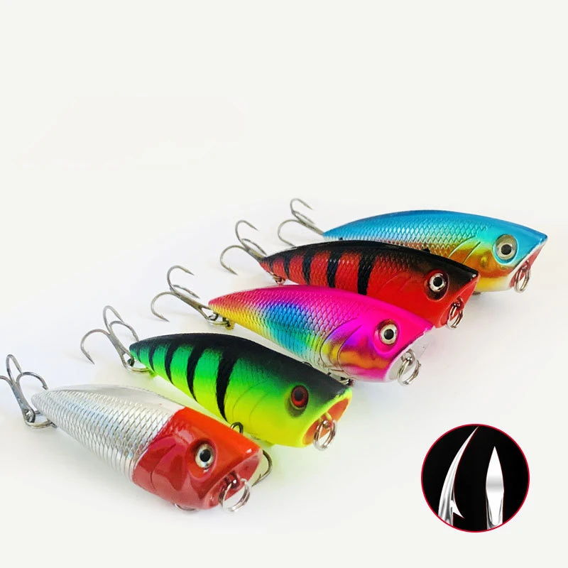 Señuelo de pesca Topwater, cebo duro con anzuelo triple, señuelo de manivela, aparejos artificiales, 8g, 7cm