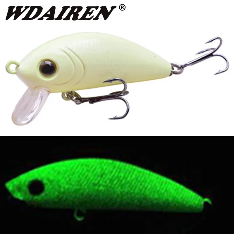1Pcs Topwater Minnow Fishing Lure 50mm 4.5g Crankbait Luminous Hard Bait Bass Lures Artificial Wobblers Fishing Tackle PescaBrand: WDAIRENLure type: Minnow Fishing baitLength: 5cmWeight: 4.5gColor: 18 different colorsSwimming Depth: Top waterMaterial: ABS plasticHook type: 2* sharp treble hookPacking list:1*Fishing lure