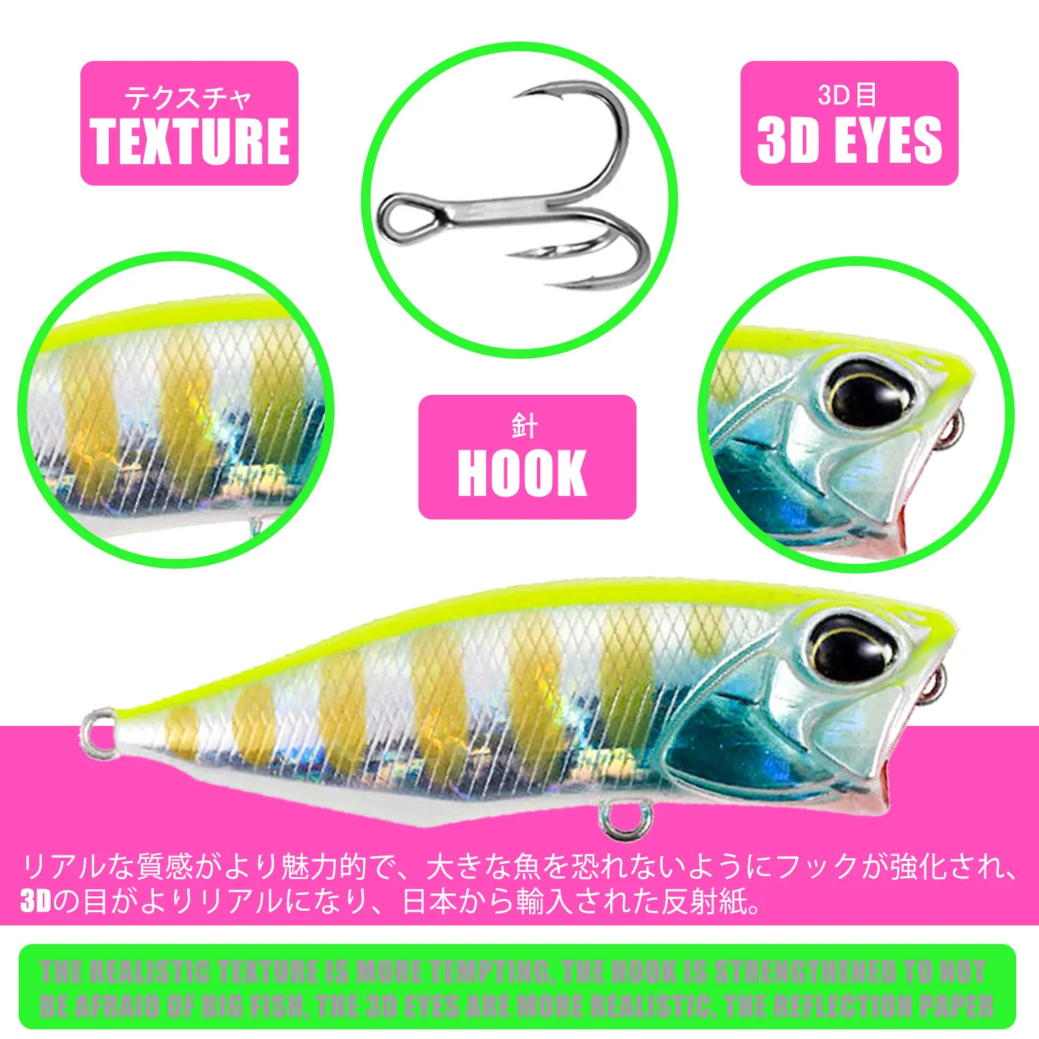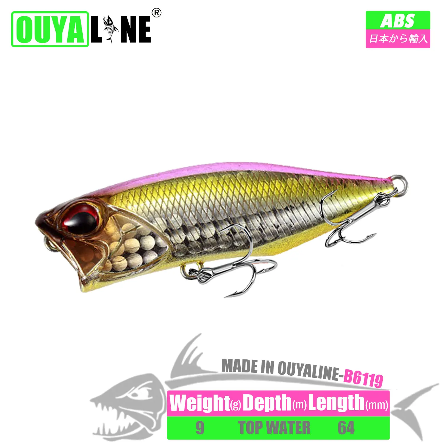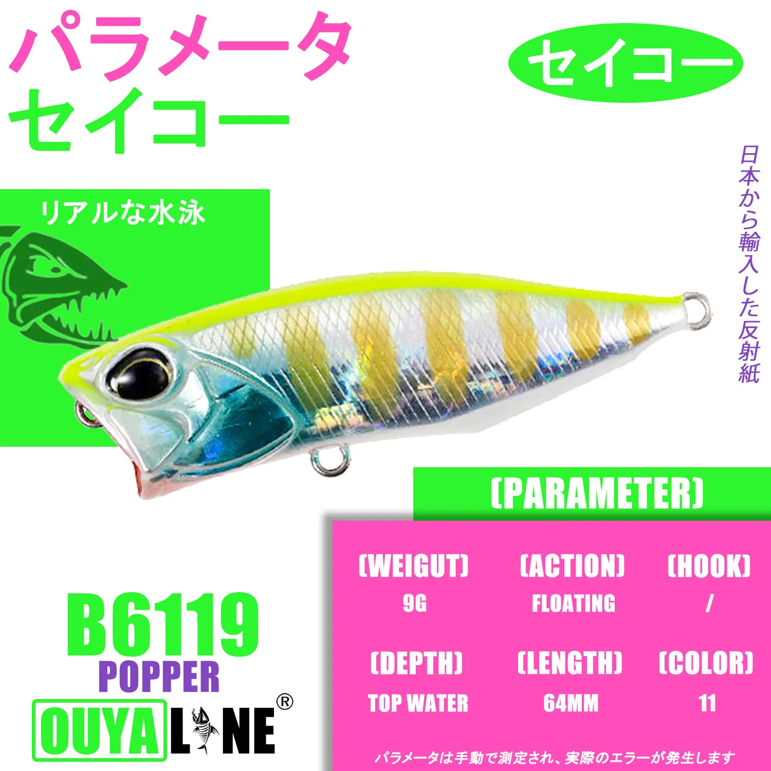 Señuelo de Pesca Topwater Popper 9g 64mm cebo duro Isca Wobblers flotantes artificiales Plástico Pesca Trolling Perch Fish Tackle Leurre