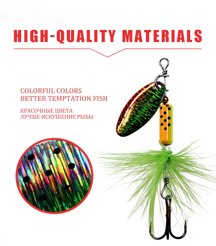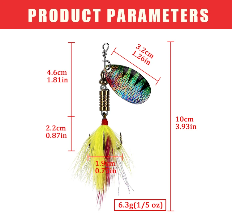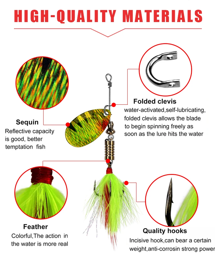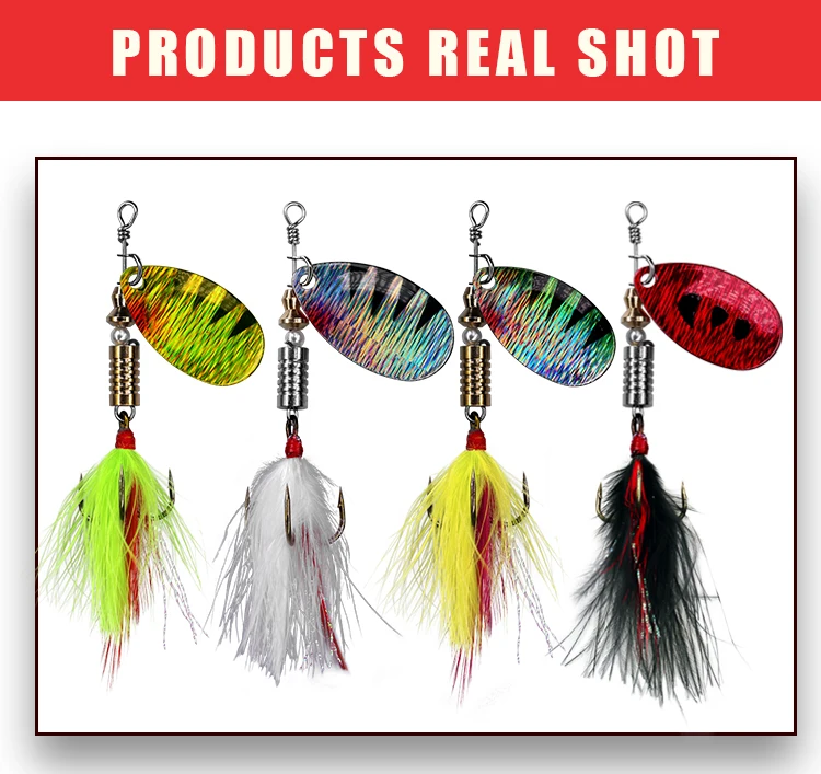 4. Application - the metal spoons can rotate in the water to make noise and ripple to attract fish, also it can reflect light rays in the water like little fish to attract big fish.