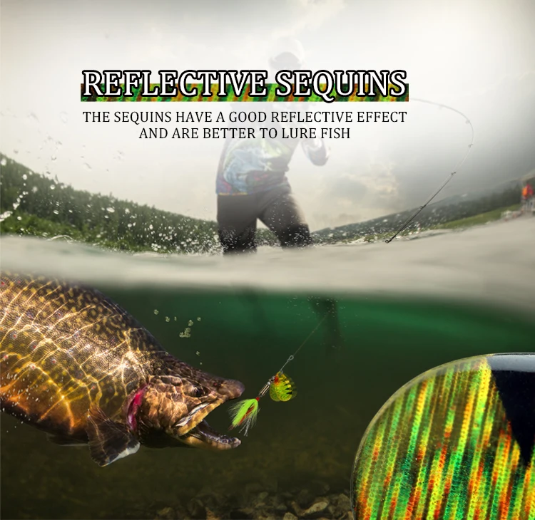 3. Bright Fishing Sequins:The action in the water is perfect and does not take a strong or quick retrieve to get them spinning. Rotatable Bright blades creating continuous flash and vibration to imitate lifelike swimming action of small fish, helping to attract larger fish.