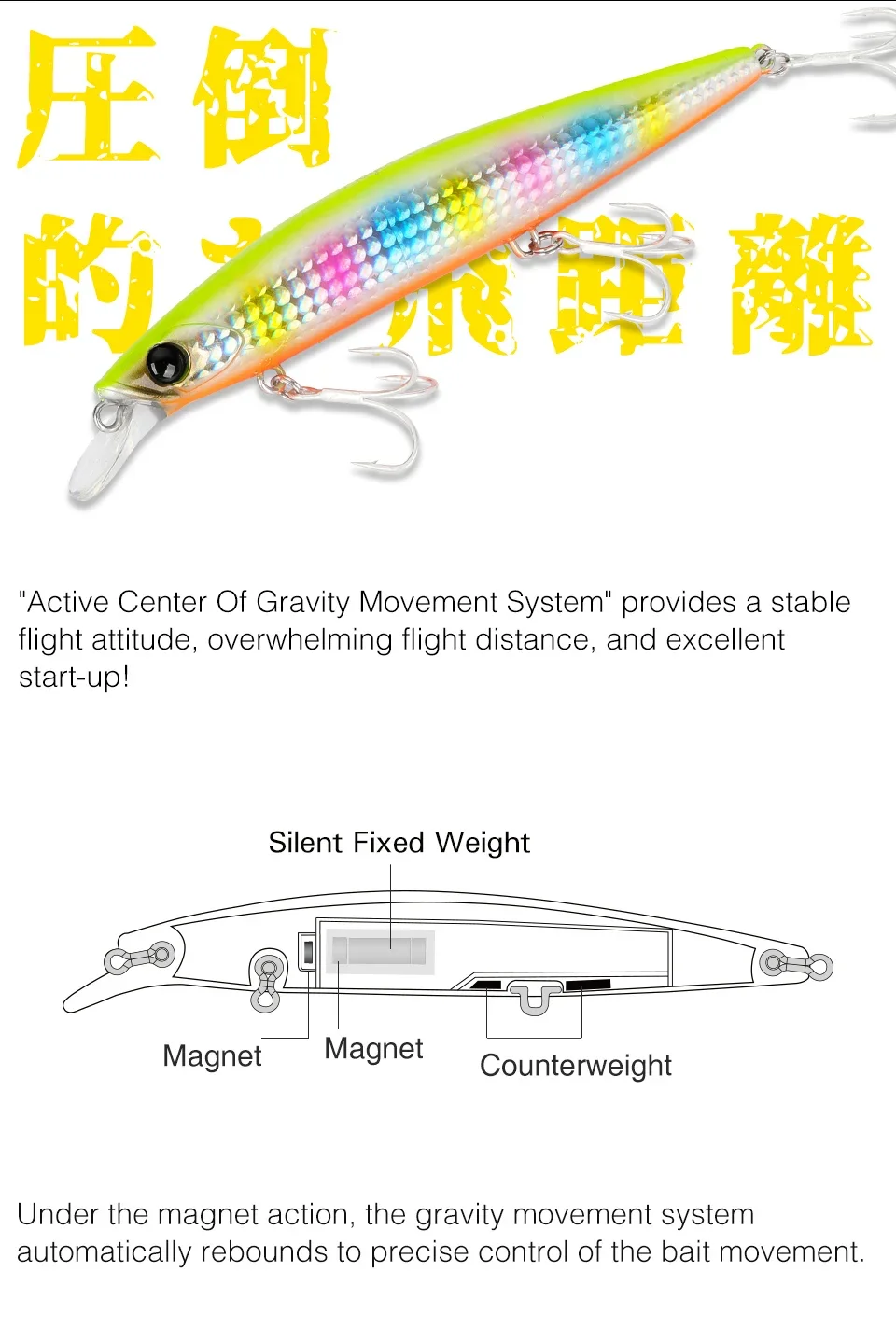 -Bajo la acción del imán, el centro de gravedad rebota automáticamente para controlar con precisión el movimiento hacia el agua.