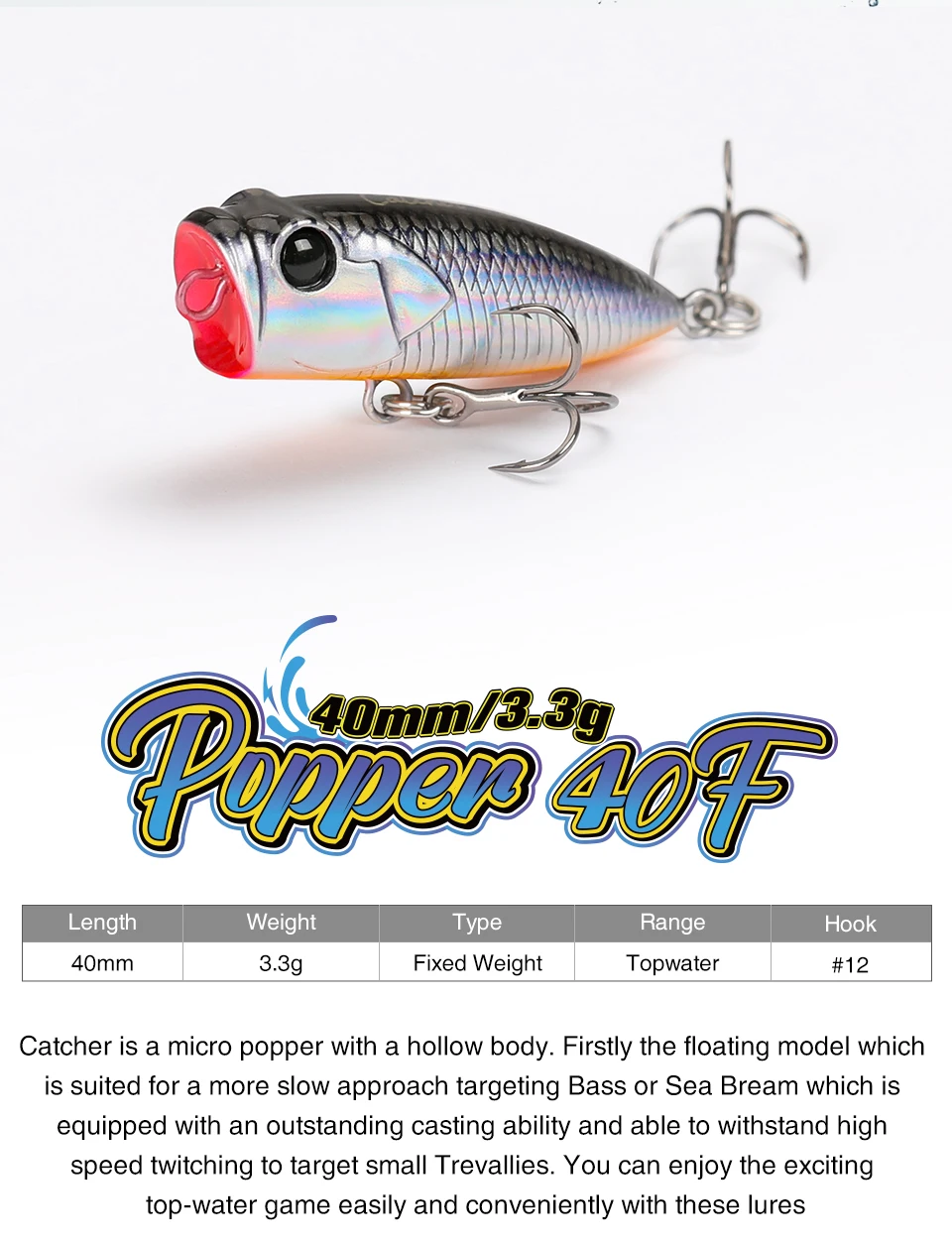 Señuelo de pesca TSURINOYA 40F Popper 40mm 3,3g CATCHER Artificial perro caminar acción cebos duros flotantes para lubina Ajing modelo Topwater