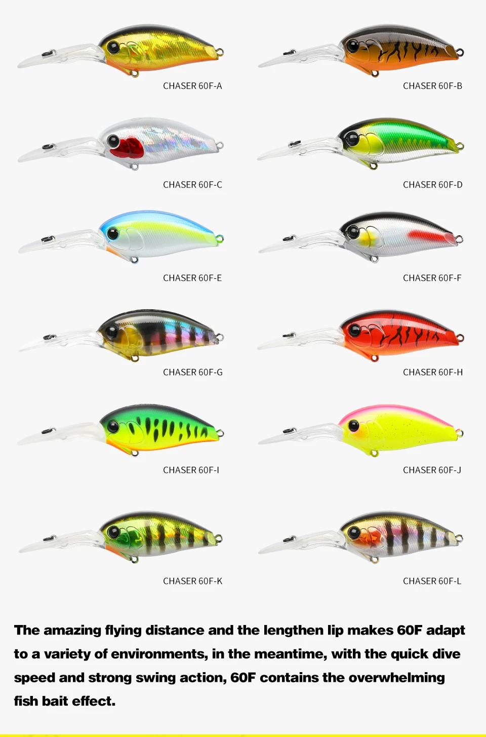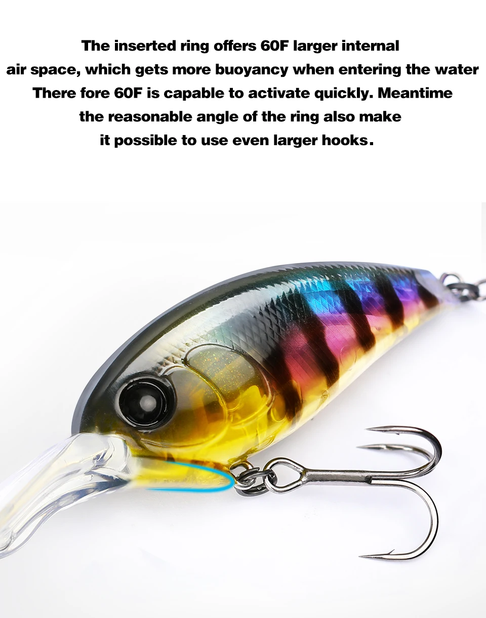 60F es capaz de atraer peces activos en la capa objetivo haciendo un fuerte sonido de golpe porque su diseño único le permite tener un mayor espacio de aire interno.
